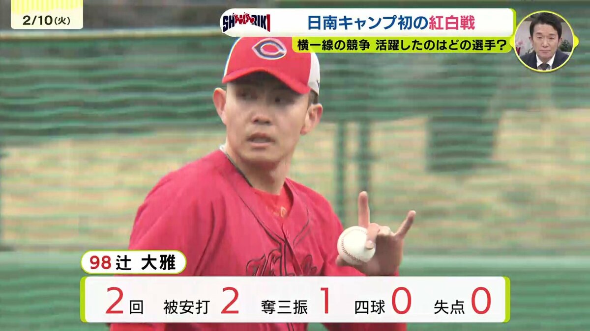 辻は去年秋から強化してきたチェンジアップも駆使しながら、2回を投げて無四球無失点。今後も開幕ローテーション入りへアピールを続けます。