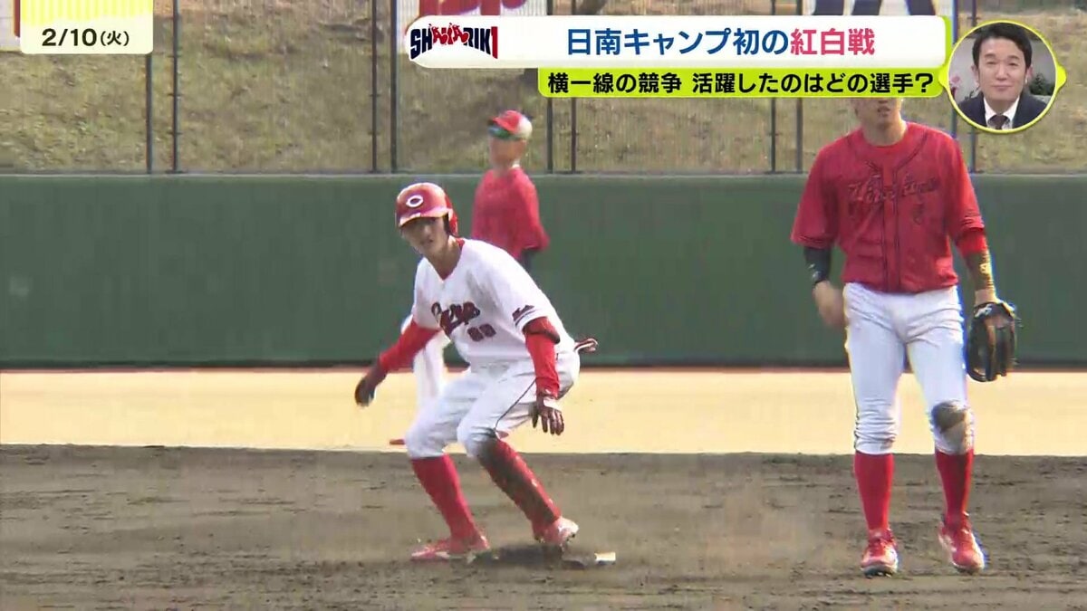 さらに送球がそれる間に、すかさず2塁へ。新井監督も「武器になる」と語った足で猛アピールします。