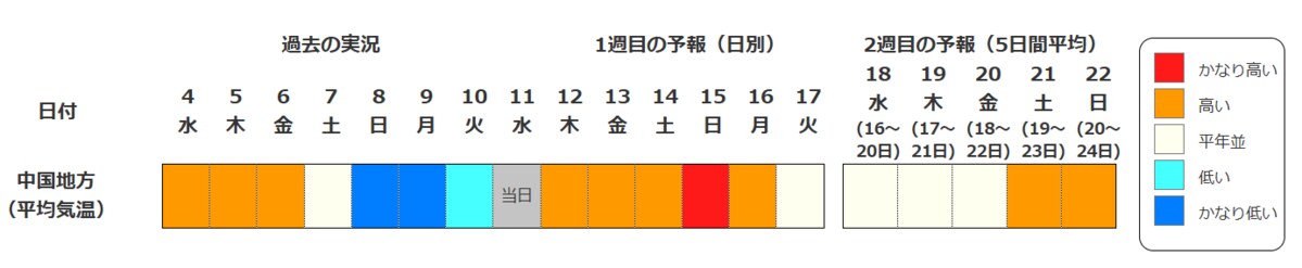 中国地方は15日頃から