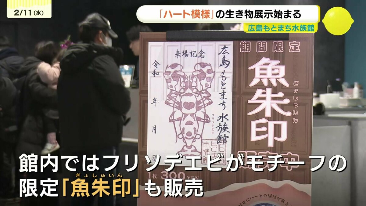 また、館内ではスタッフがデザインした、フリソデエビがモチーフの限定「魚朱印(ぎょしゅいん)」も販売され、来館者の人気を集めていました。この特別展示は、ホワイトデーの3月14日まで開かれています。