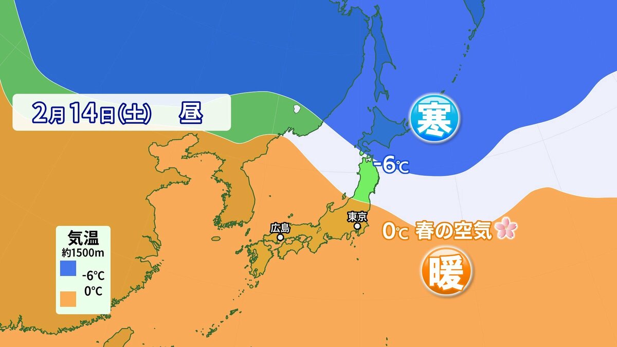 日中の気温は、きのうよりも2℃~3℃ほど高くなるでしょう。特に沿岸部では、3月並の春の陽気になります。一日の寒暖差が大きいですので、脱ぎ着しやすい服装でお過ごしください。