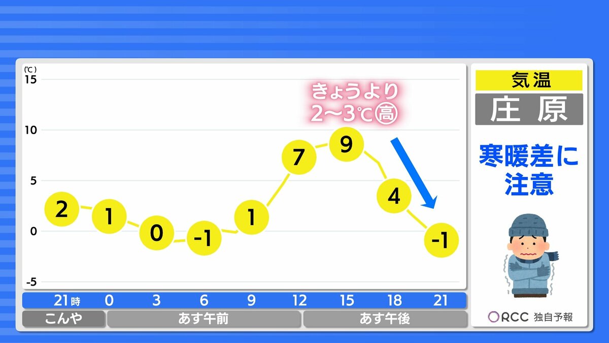大陸からは次の高気圧が近づき、午後ほど安定して晴れるでしょう。洗濯日和、お出かけ日和になります。晴れる分再び空気の乾燥が進むため、火の取り扱いにはご注意ください。
