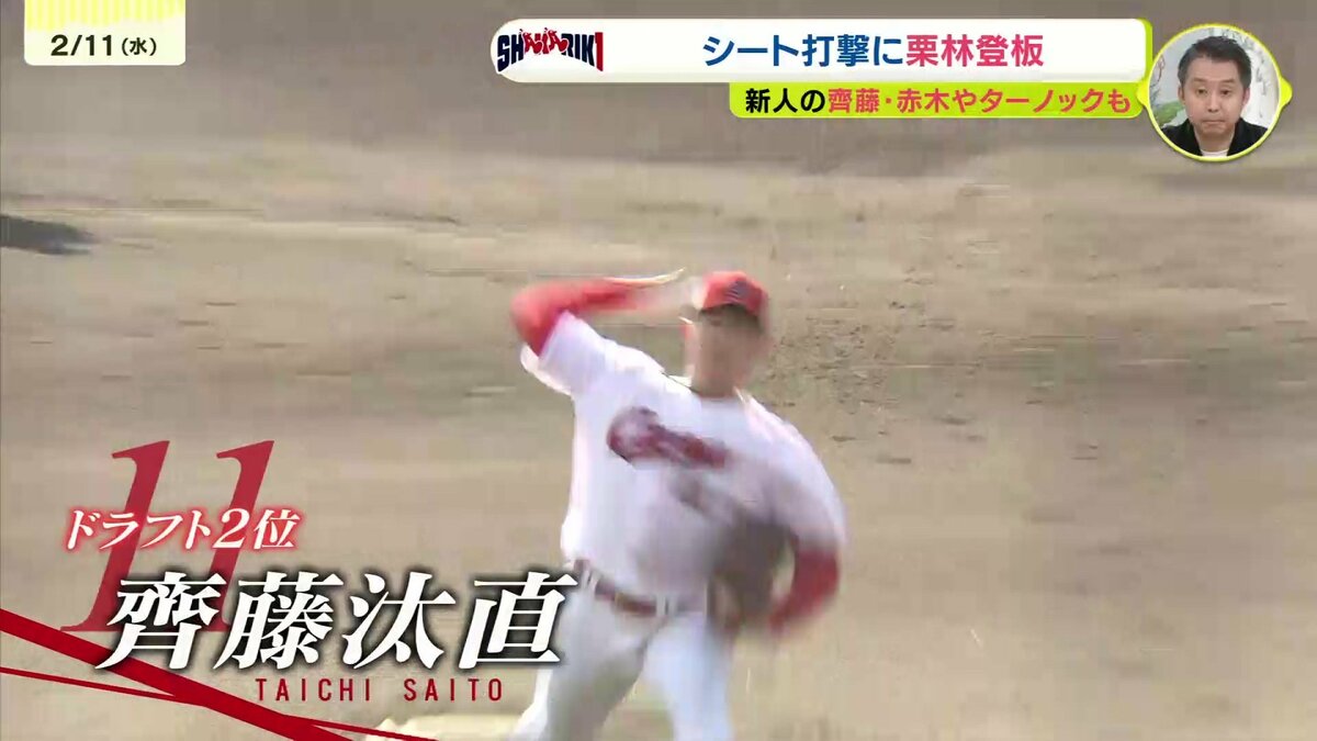 ドラフト2位の齊藤汰直(さいとうたいち)は矢野のバットをへし折るボールの強さを見せました。
