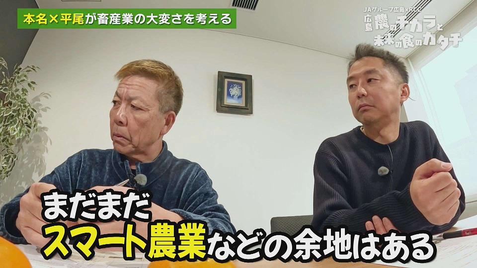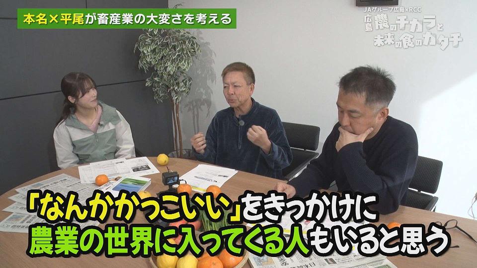 RCCラジオ 「本名正憲のおはようラジオ」 での農業トークがおなじみのパーソナリティ 本名正憲さん 、農家さんとも接点が多い NPO法人ひろしまジン大学 代表理事 平尾順平さん 、RCC楠本麗奈アナウンサー が広島の農業の今を熱く語り合う 「本名×平尾の広島農業談義」 。