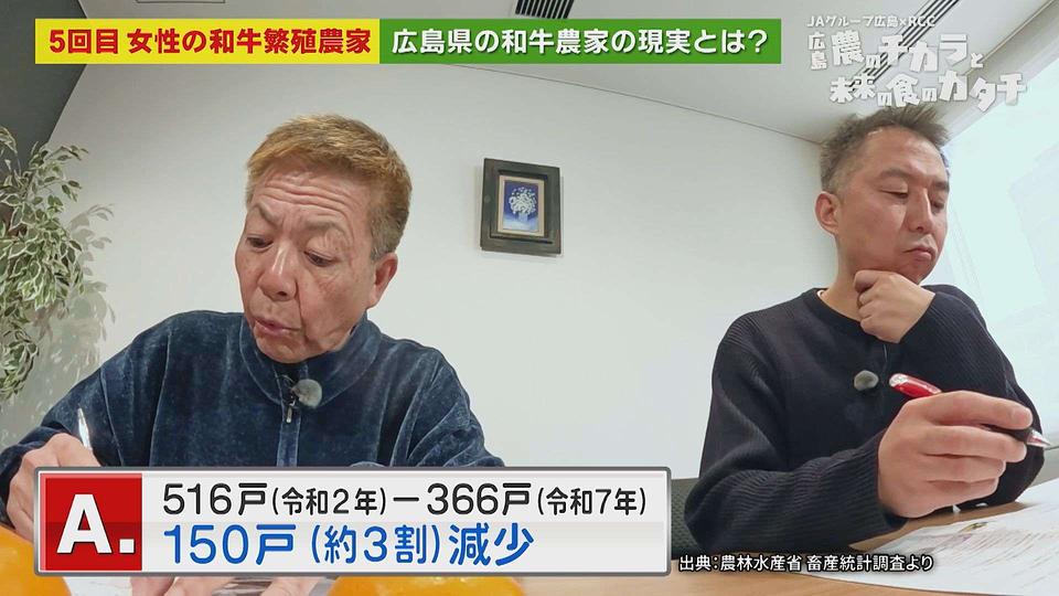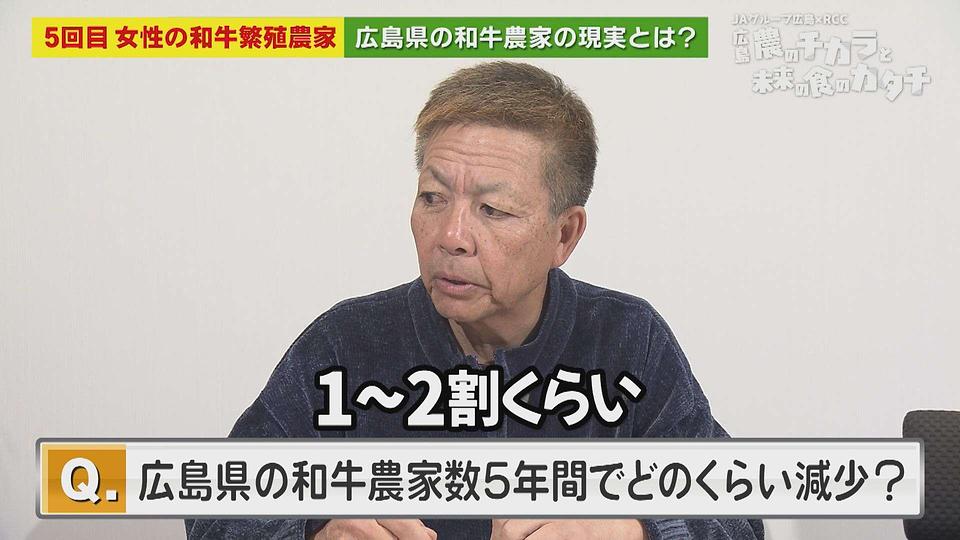 では、ここ5年間で 広島県の和牛農家数はどのくらい減少していると思いますか❓