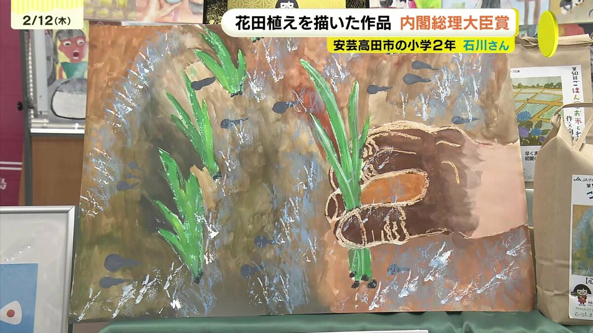 米作りをテーマにした絵のコンクールで、広島県安芸高田市の小学生が描いた作品が、内閣総理大臣賞に選ばれました。