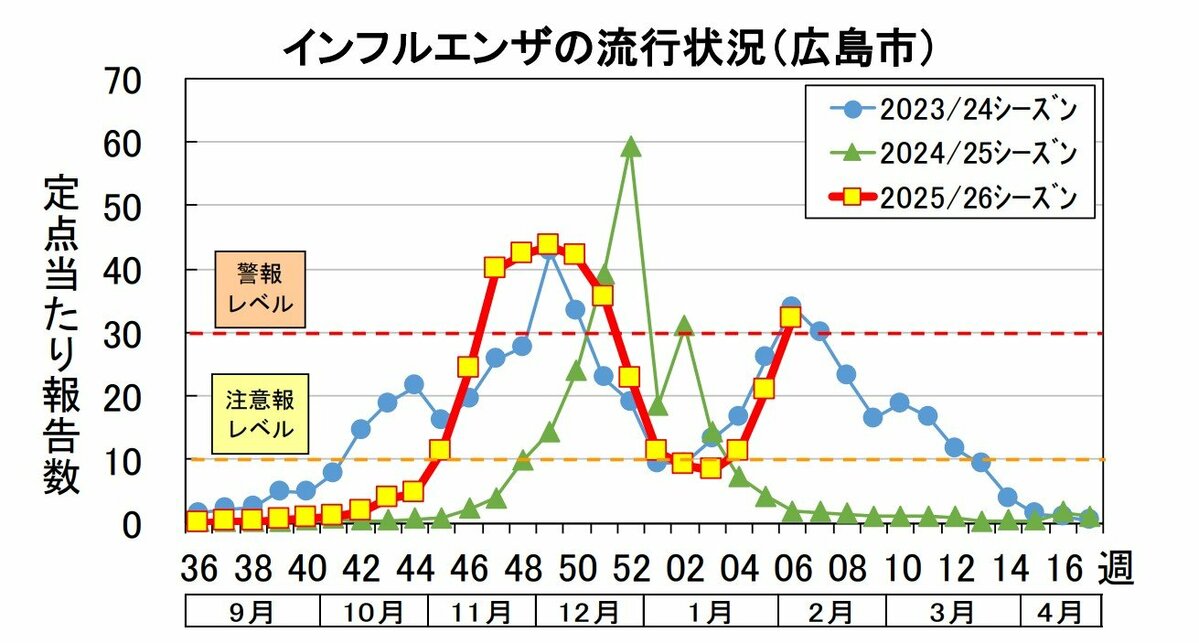 広島市は12日、インフルエンザの患者数が警報レベルを上回ったと発表しました。今シーズン2回目です。