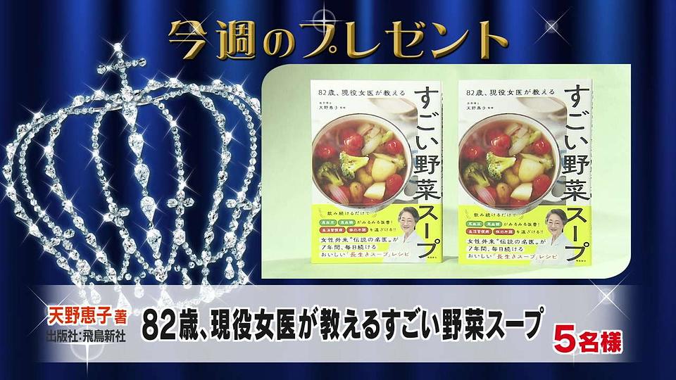 2月13日(金)放送の「ランキンLand!」から視聴者プレゼントのお知らせです。今週は、昨秋102歳の誕生日を迎えた佐藤愛子さんのエッセイ集と、82歳の現役医師・天野恵子さんの「長生きスープ」のレシピ本を、それぞれ5名様にプレゼントします。