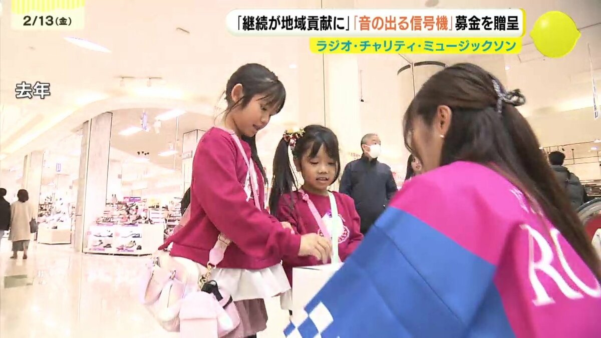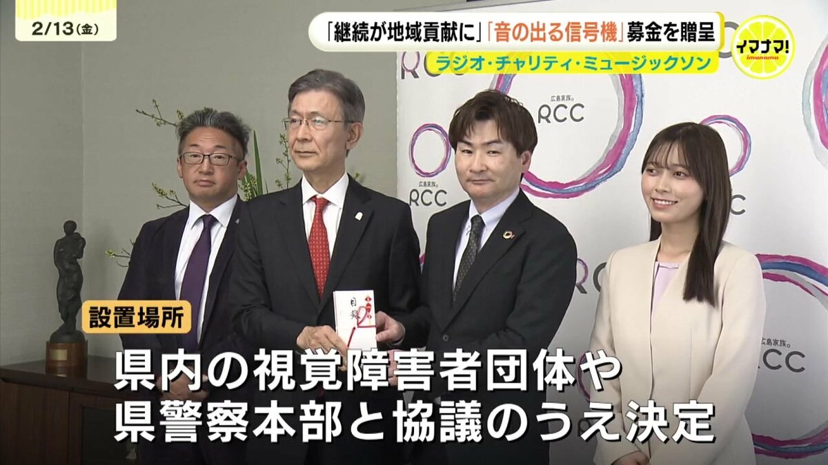 目の不自由な方に音の出る信号機を贈る「ラジオ・チャリティ・ミュージックソン」の募金がRCCに届られました。