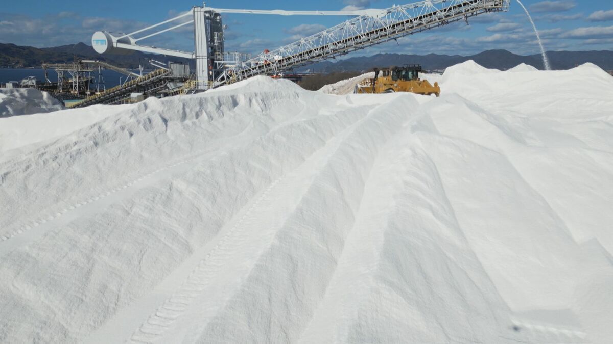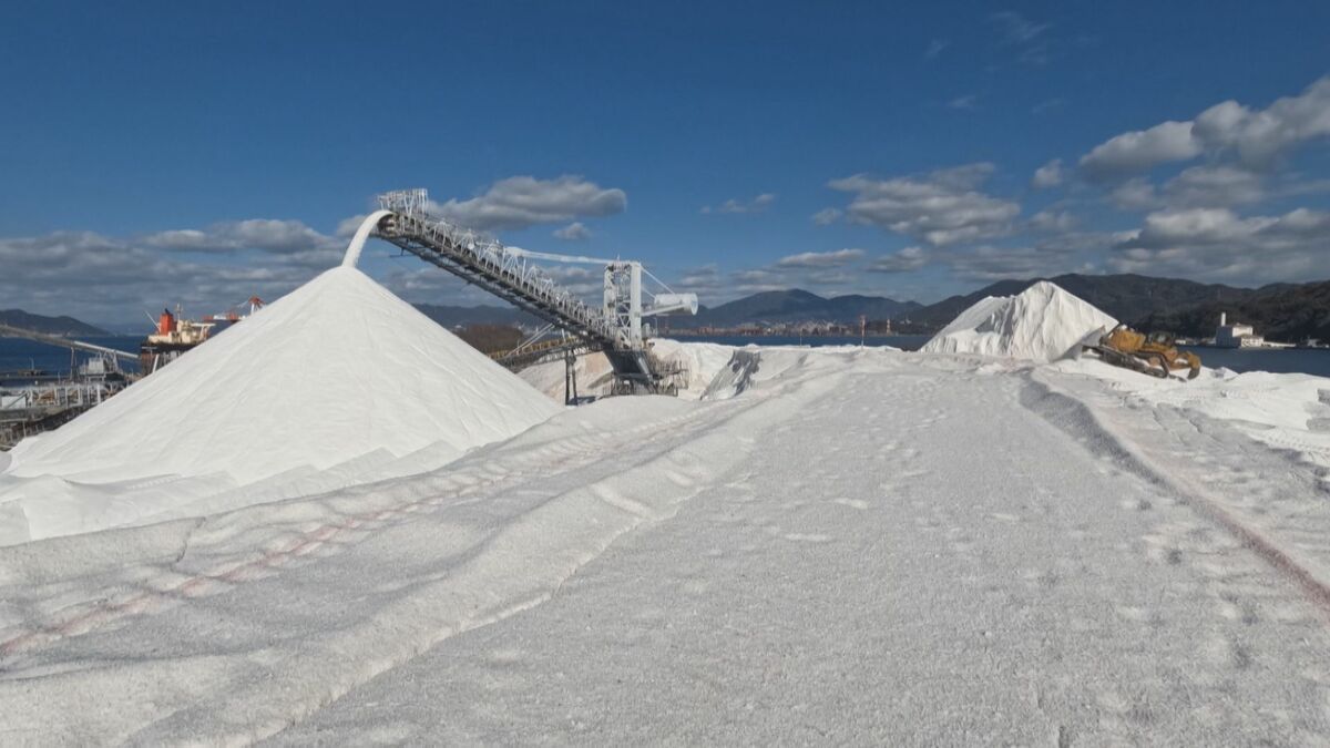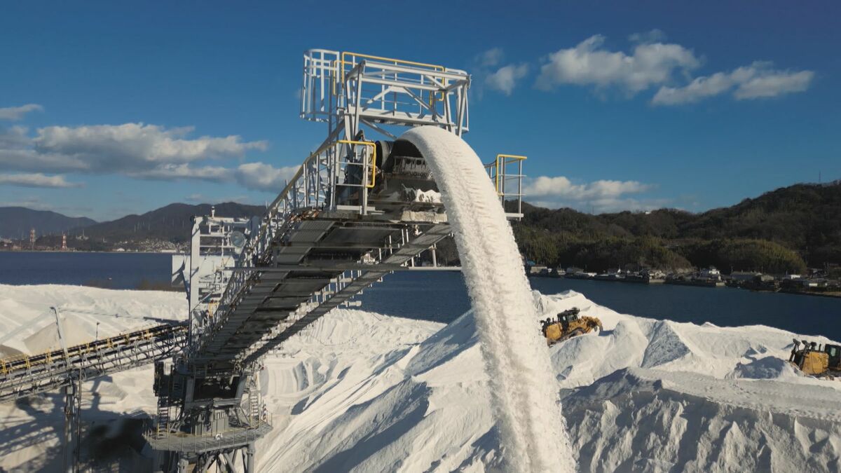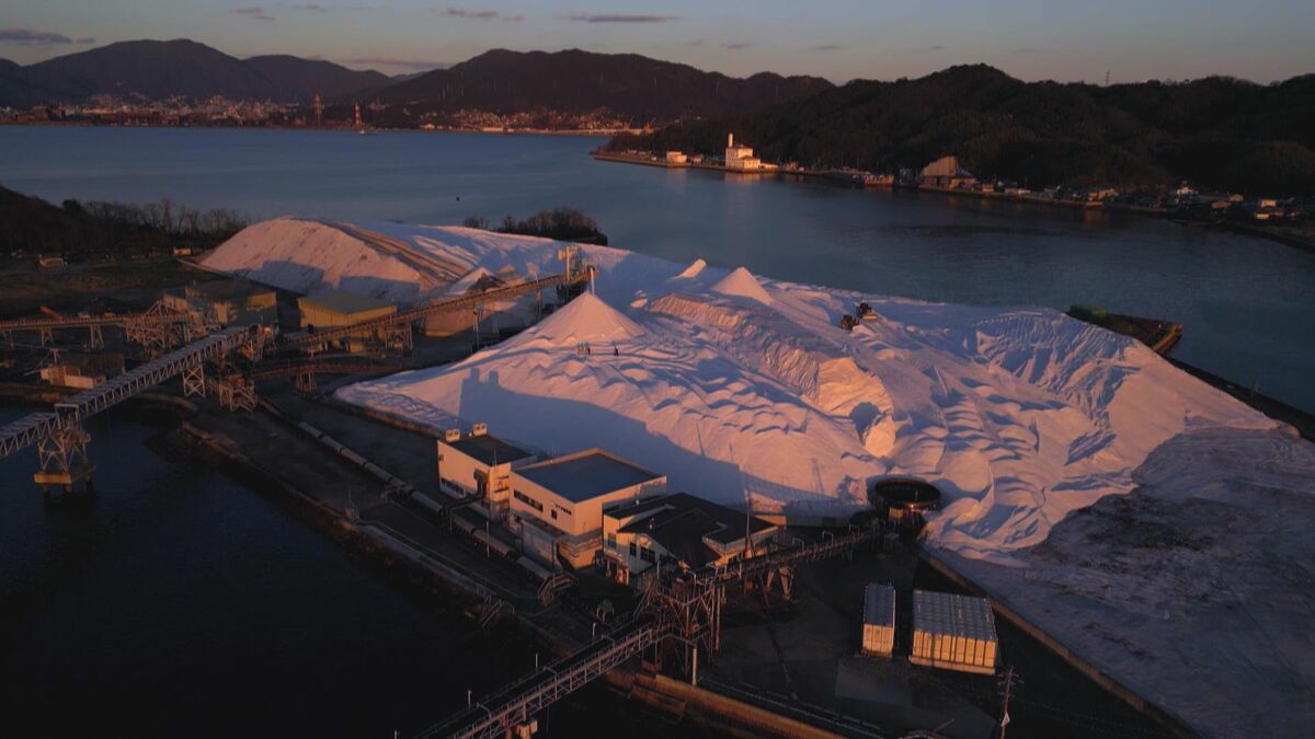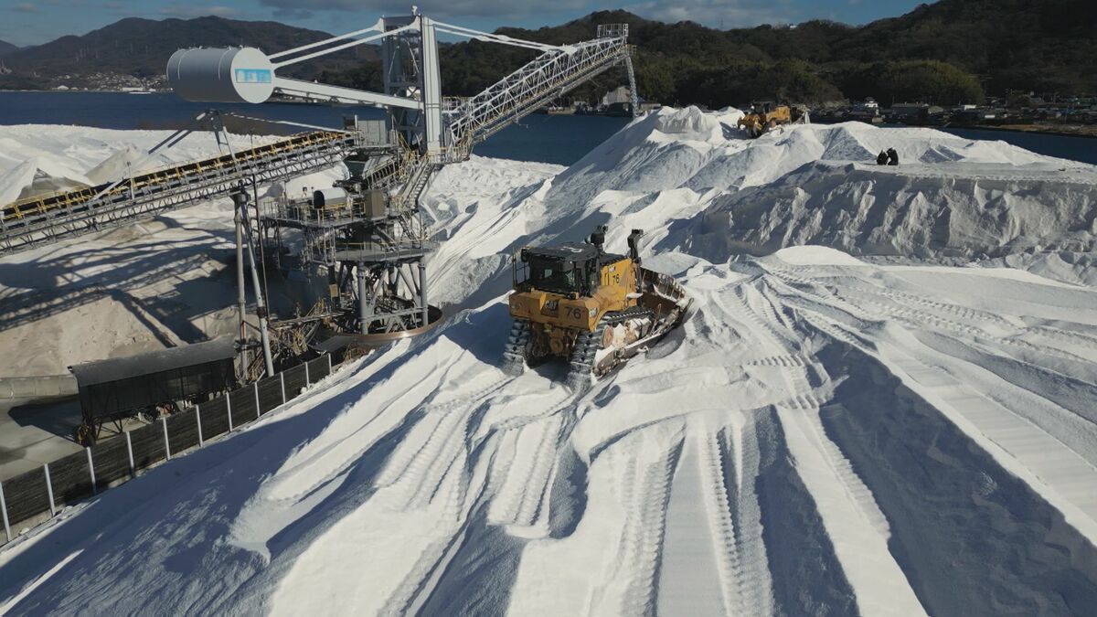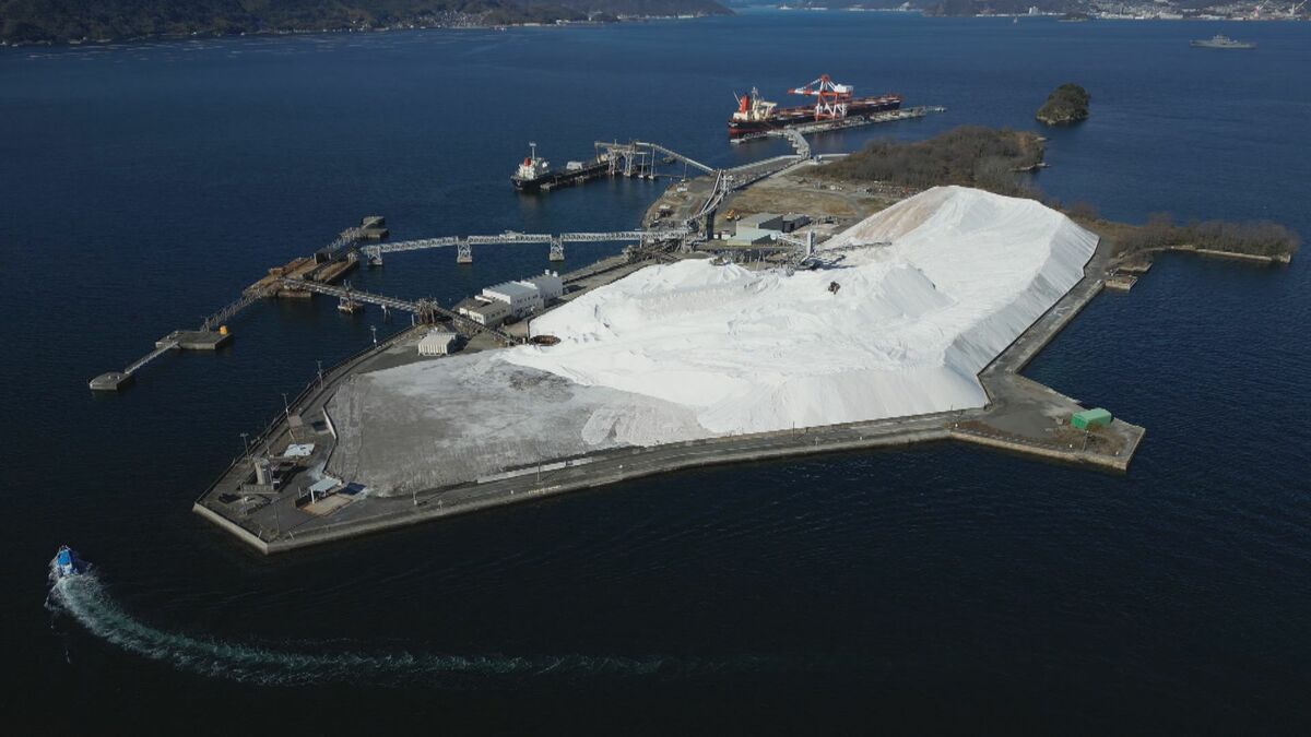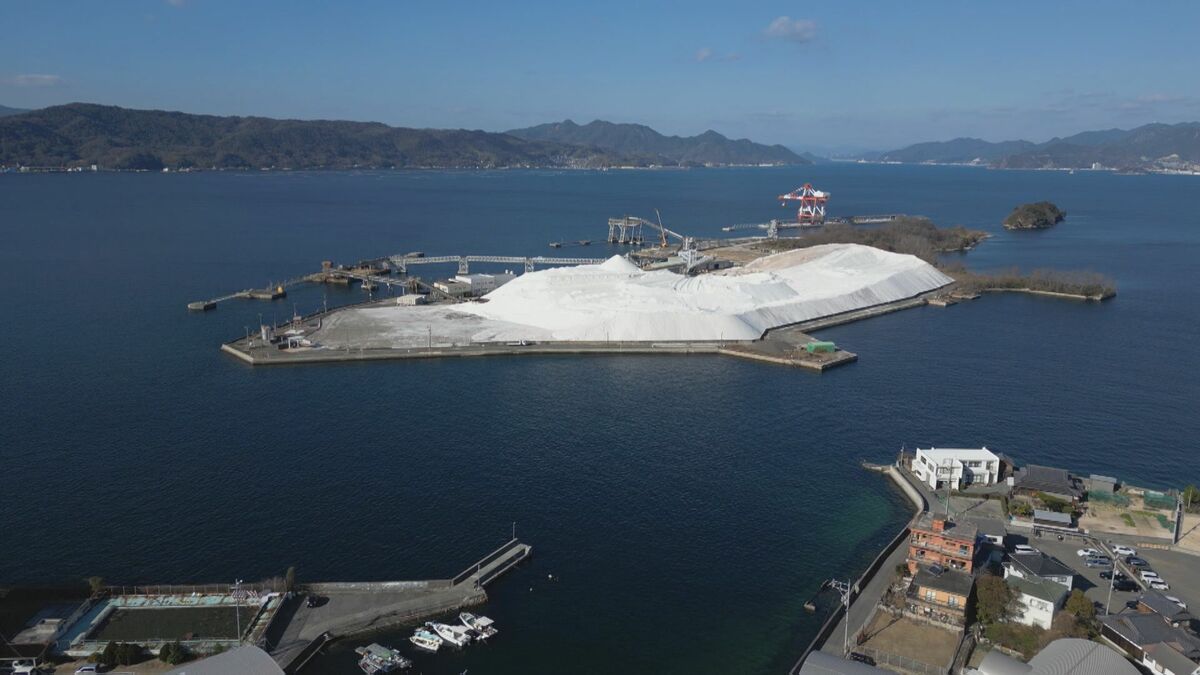 瀬戸内海に浮かぶ「真っ白い山」。雪山のようにも見えますが、実はこれ、私たちの生活を支える「あるもの」で出来ています。その驚きの正体を取材しました。