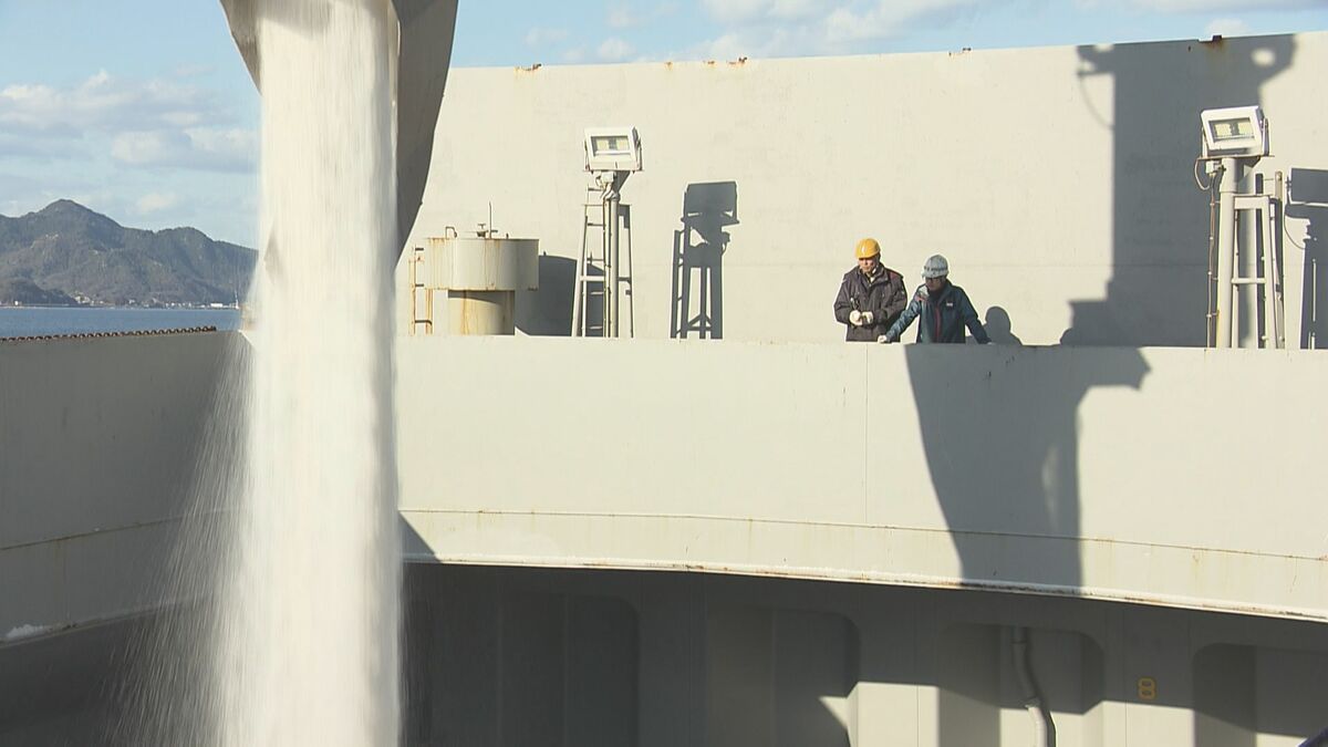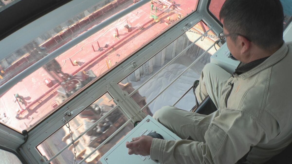 ここで保管される塩のおよそ8割が、製品の原料となる『工業用塩』です。国内市場の2割近くをこの島が担っています。