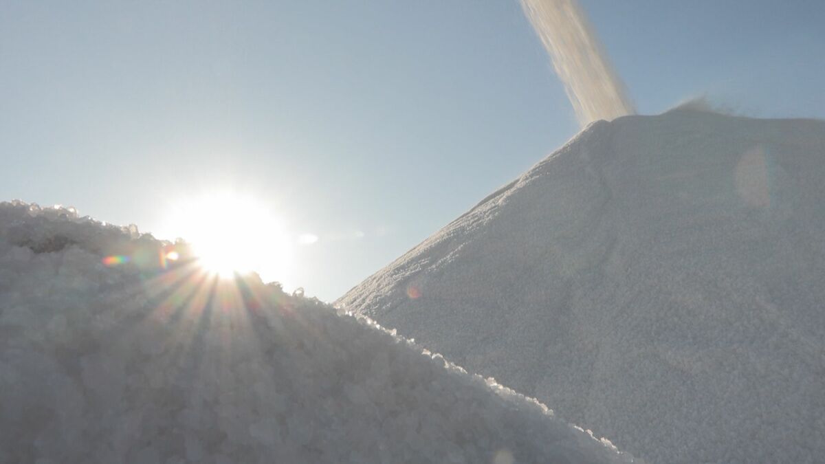 「特に今はね、道路に撒く塩が一番ですね。(食べても無害?)無害です。全然、海の塩を天日で乾かして作った塩なので、食べても大丈夫ですけど、これはお客さんのもんなんで、一粒たりとも食べてはいけません」