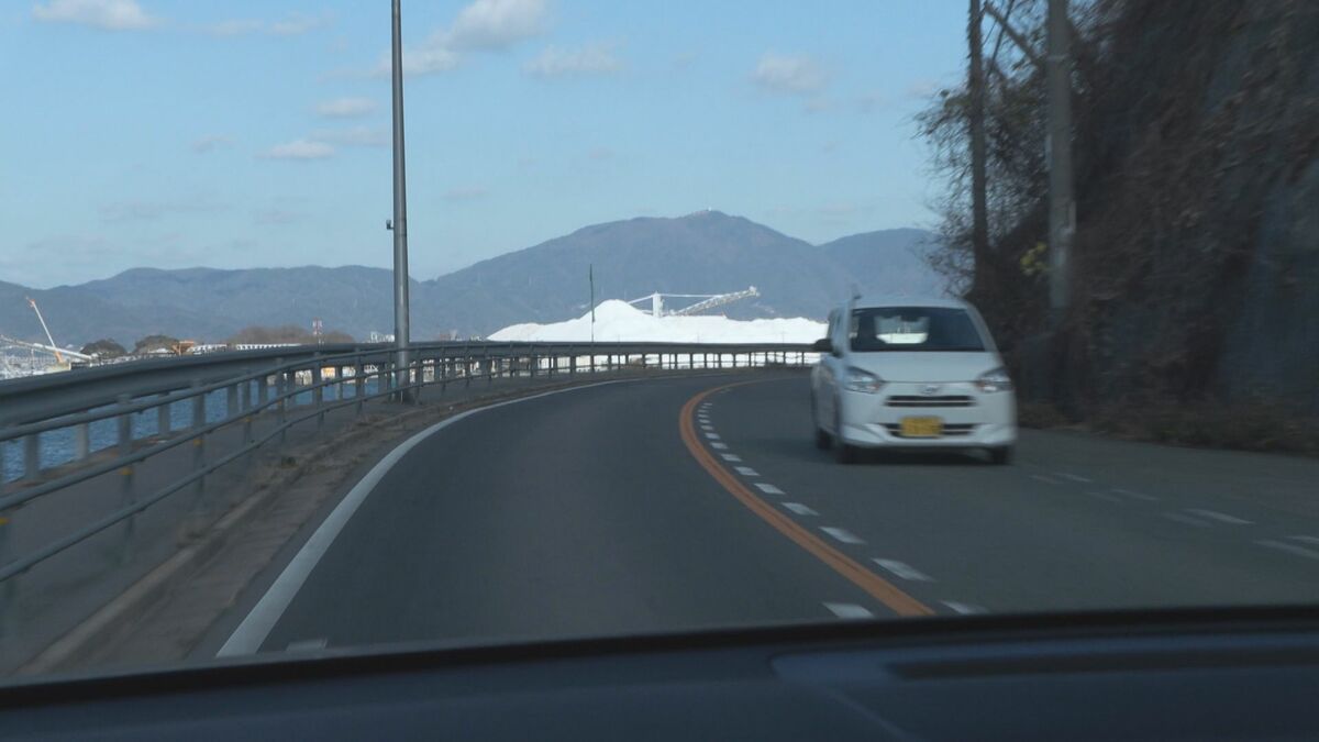 穏やかな瀬戸内海の沿岸を走っていると、視界に飛び込んでくる「純白の山」。その圧倒的な存在感に目を奪われます。