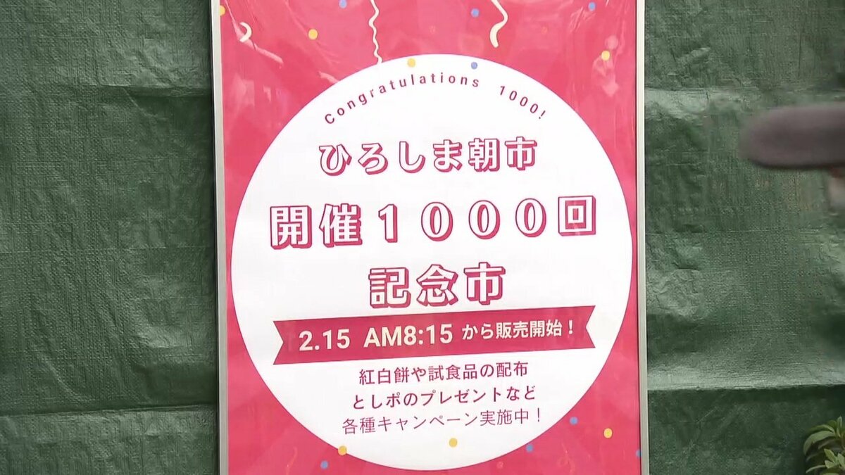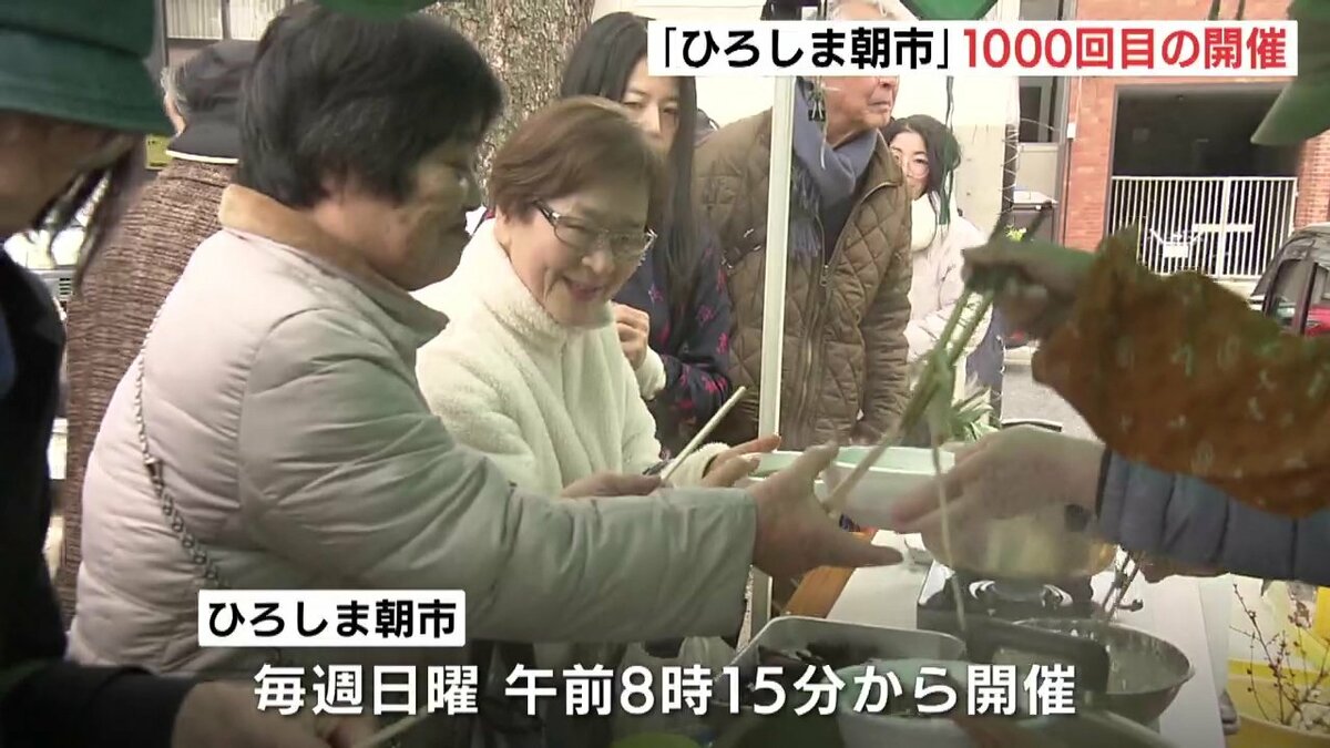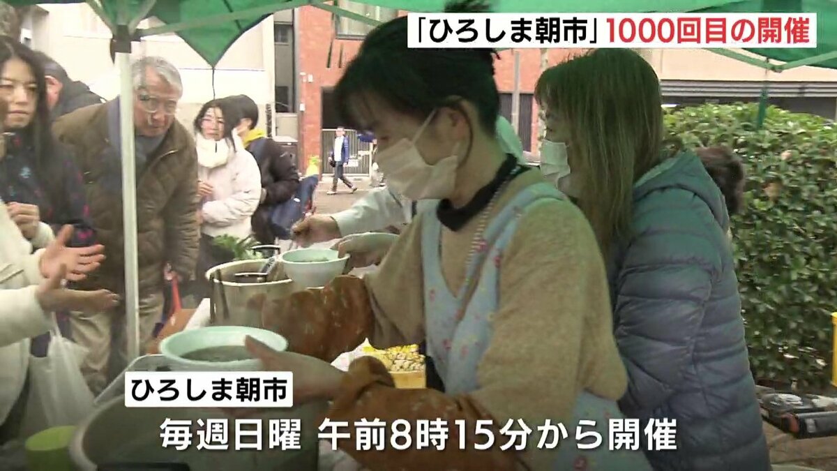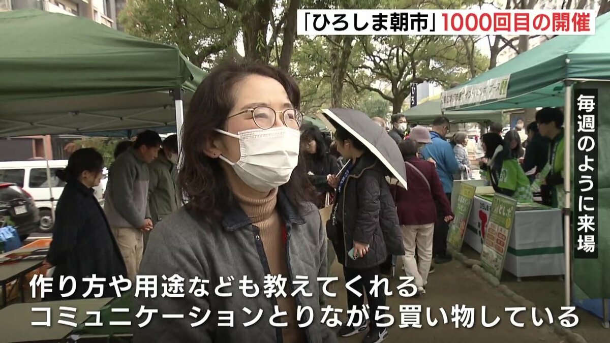 広島市の平和大通り緑地帯で毎週開かれている、広島市内でとれた野菜や海産物などを生産者が直接販売する催し「ひろしま朝市」が1000回目の開催を迎えました。