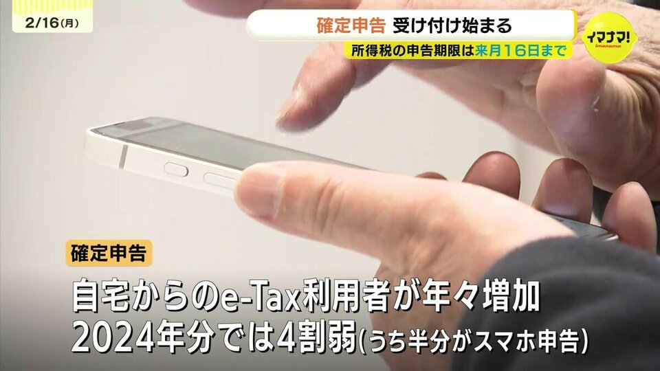 自宅からのe-Tax=オンライン申告利用者は年々増えていて、2024年分では、全体の4割弱。そのうち半分がスマホ申告だということです。
