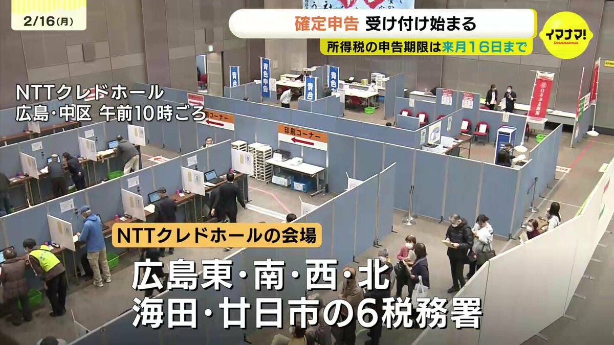 確定申告の受付が16日から始まりました。広島市内の特設会場では、個人事業主などが手続きに訪れていました。