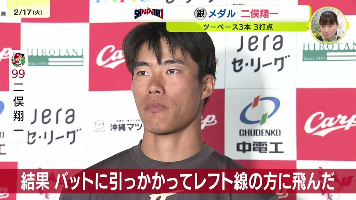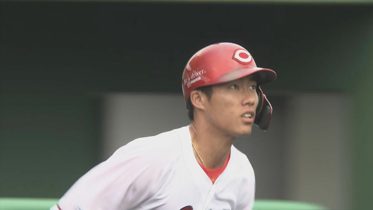 カープの二俣翔一選手がコザしんきんスタジアムで行われた、楽天との練習試合で3安打の猛打賞を記録しました。