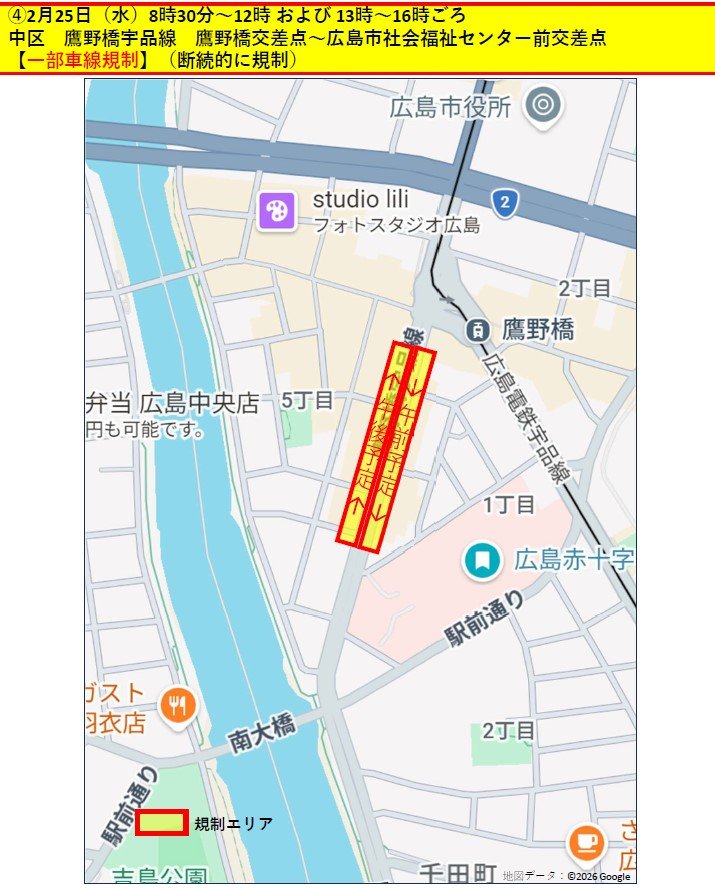 中区鷹野橋 鷹野橋宇品線(一部車線規制)