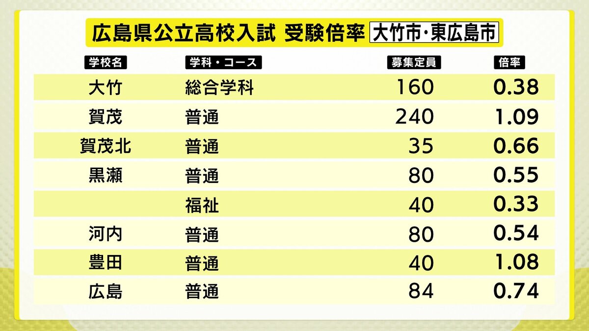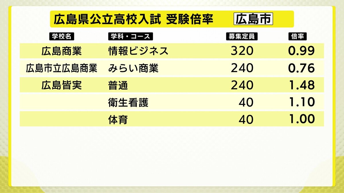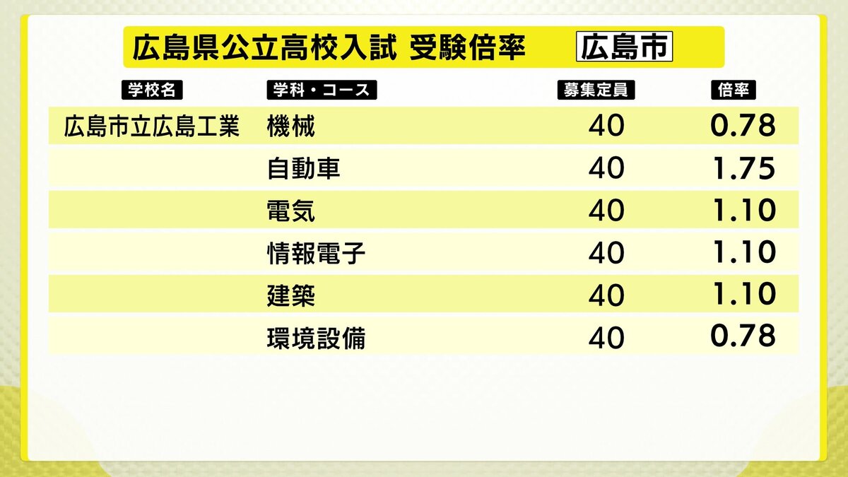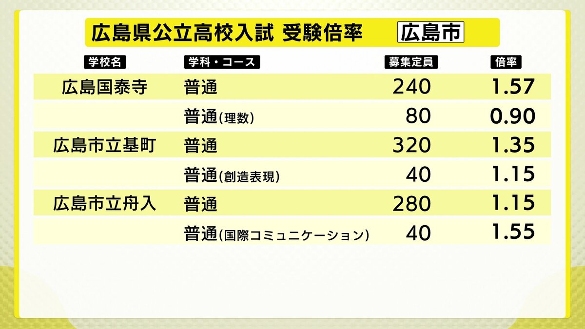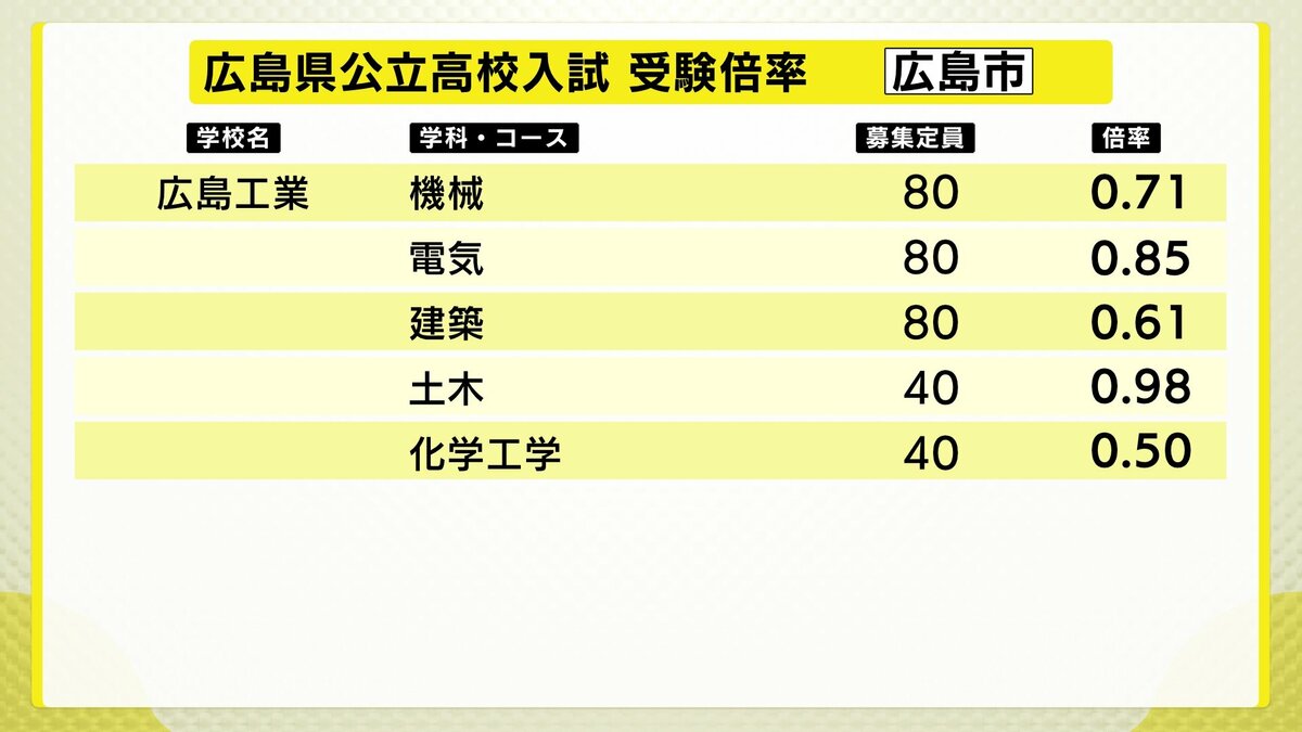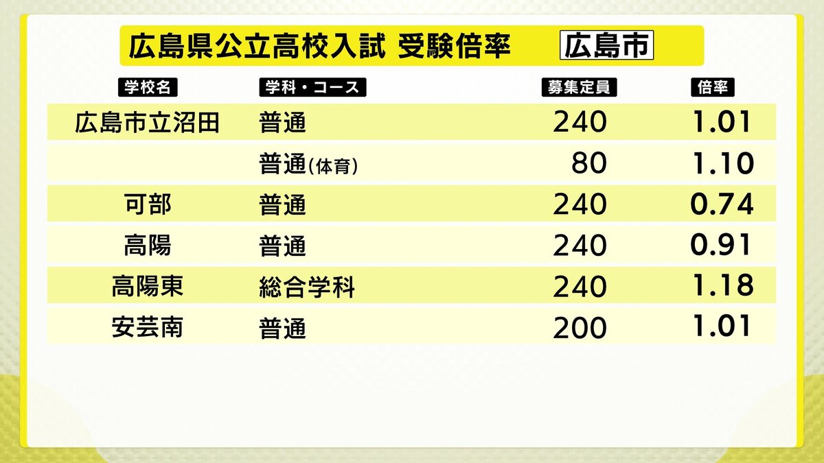 広島県教育委員会は18日、県内の公立高校の一次選抜について、最終志願状況を発表しました。全日制本校の志願者数は1万3737人で、志願倍率は0.94倍となっています。【全校掲載】広島県公立高校入試2026 最終志願倍率