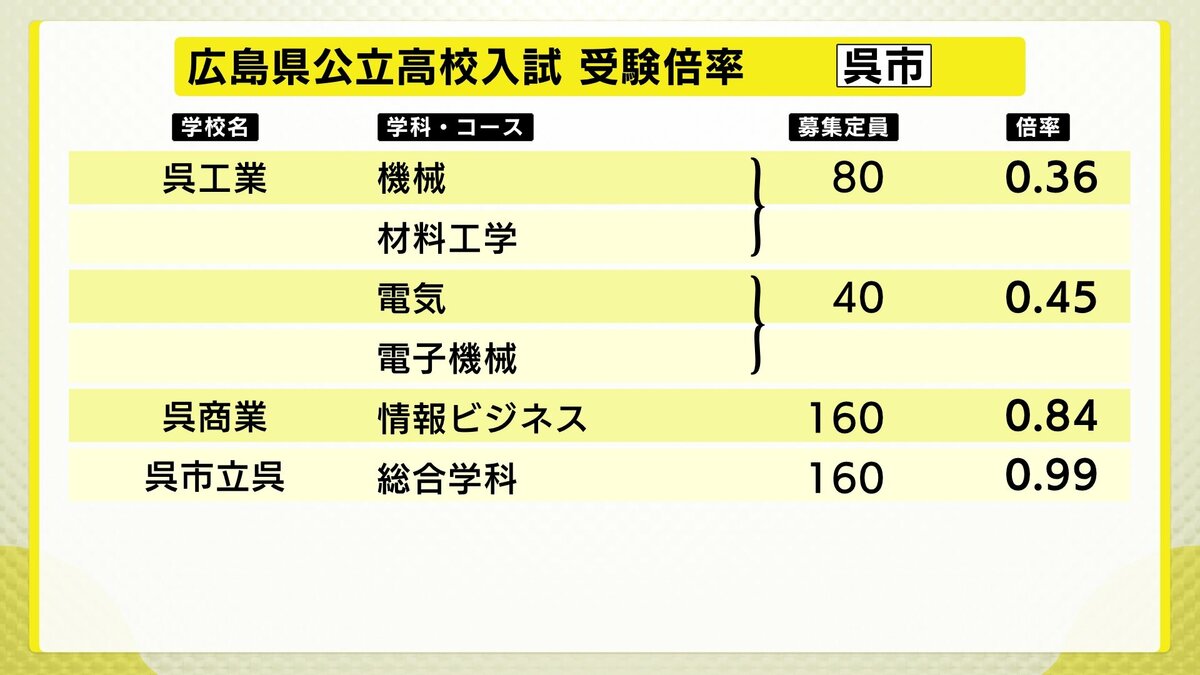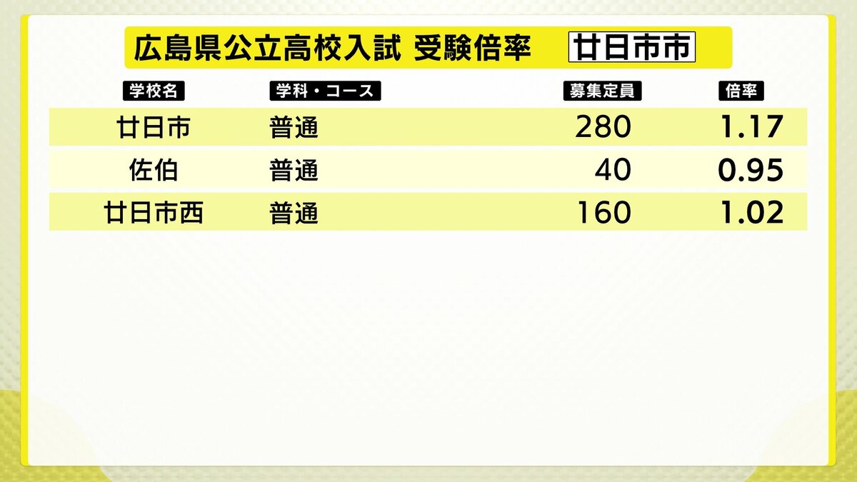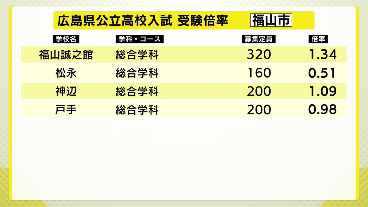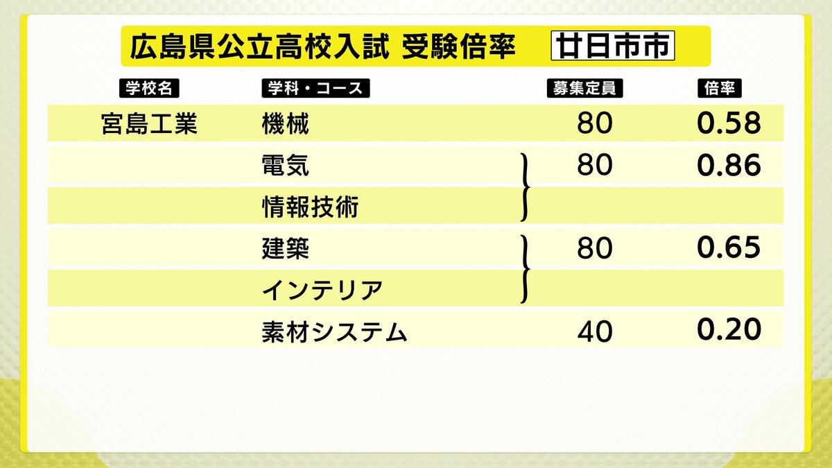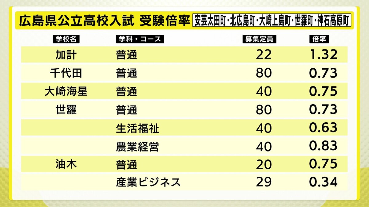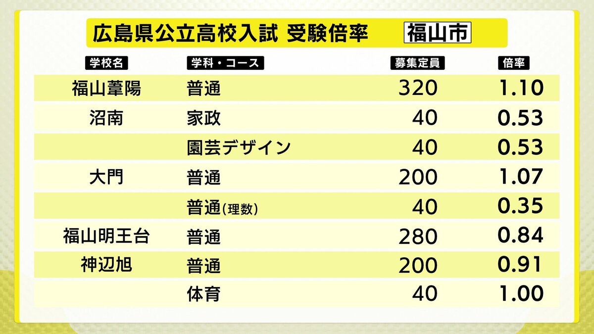 広島県教育委員会は18日、県内の公立高校の一次選抜について、最終志願状況を発表しました。全日制本校の志願者数は1万3737人で、志願倍率は0.94倍となっています。【全校掲載】広島県公立高校入試2026 最終志願倍率