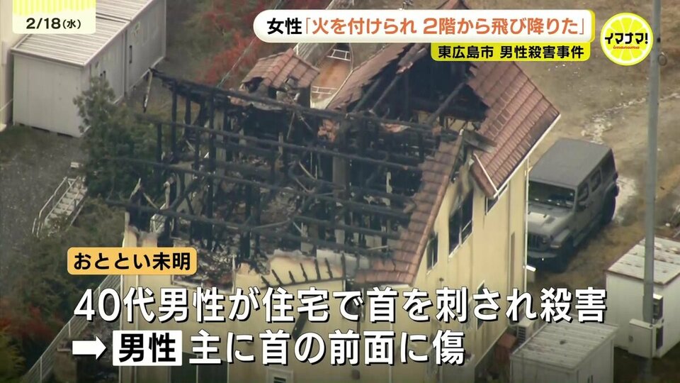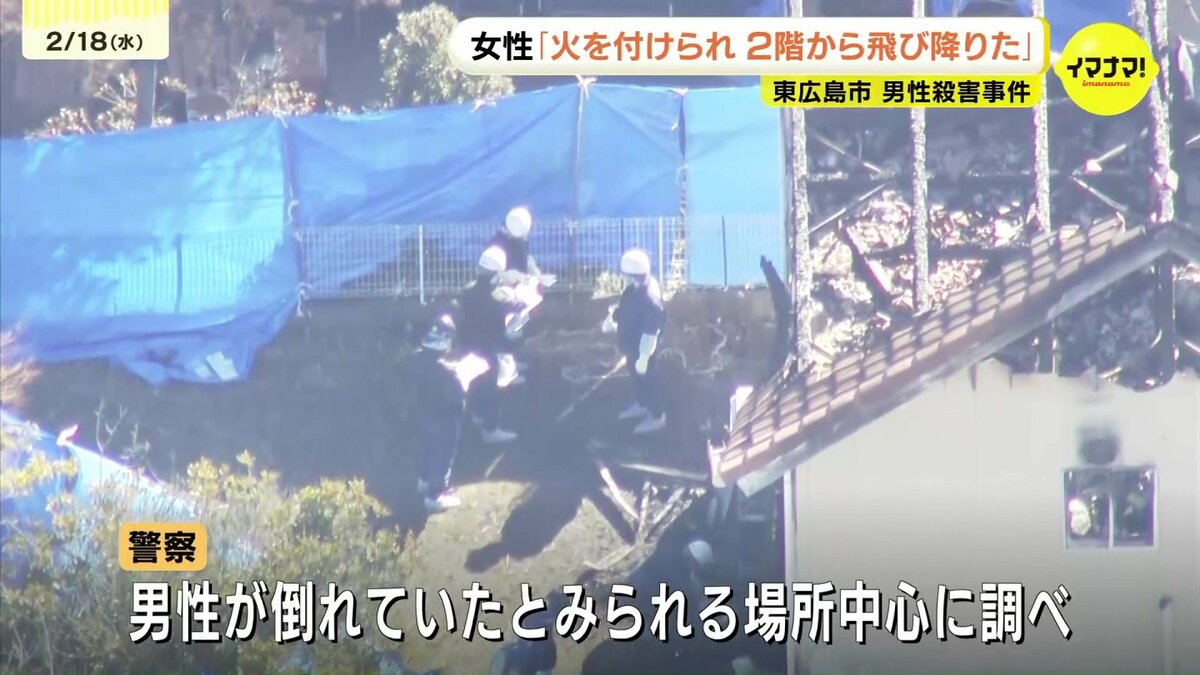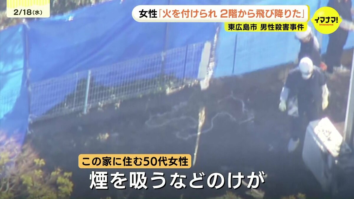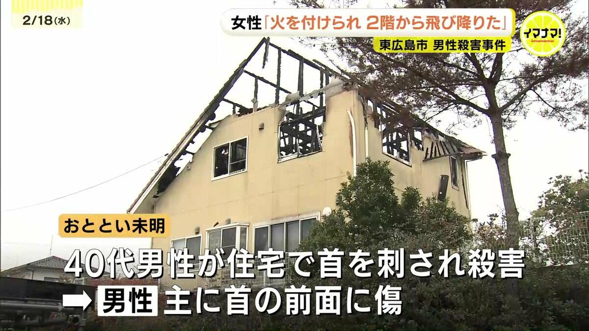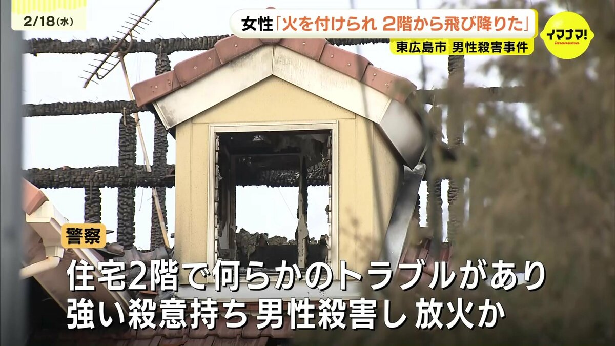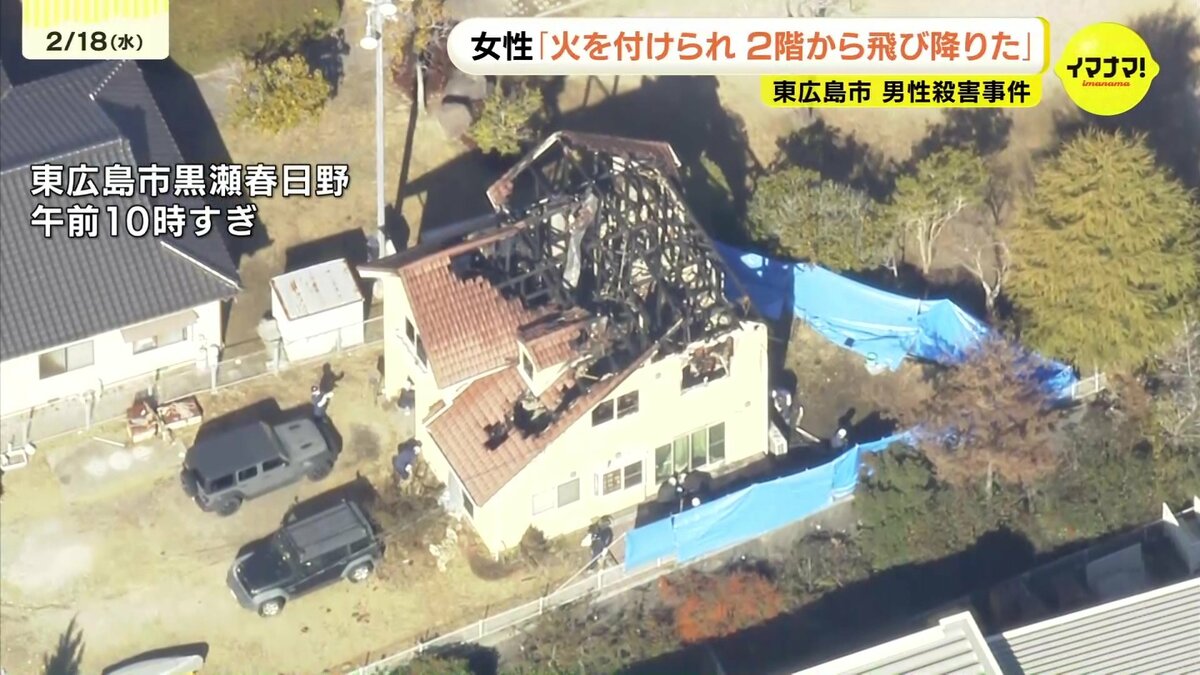 広島県東広島市の住宅で男性が殺害された事件で、けがをした妻は「火を付けられて2階から飛び降りて逃げた」と話していることがわかりました。