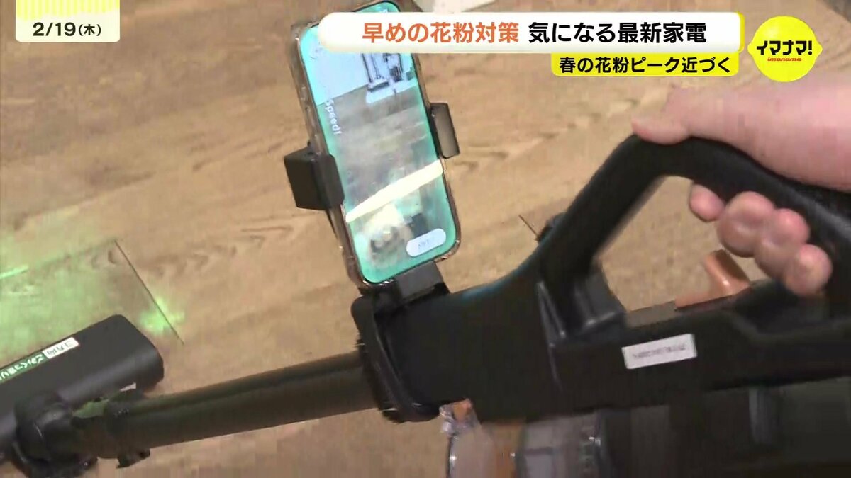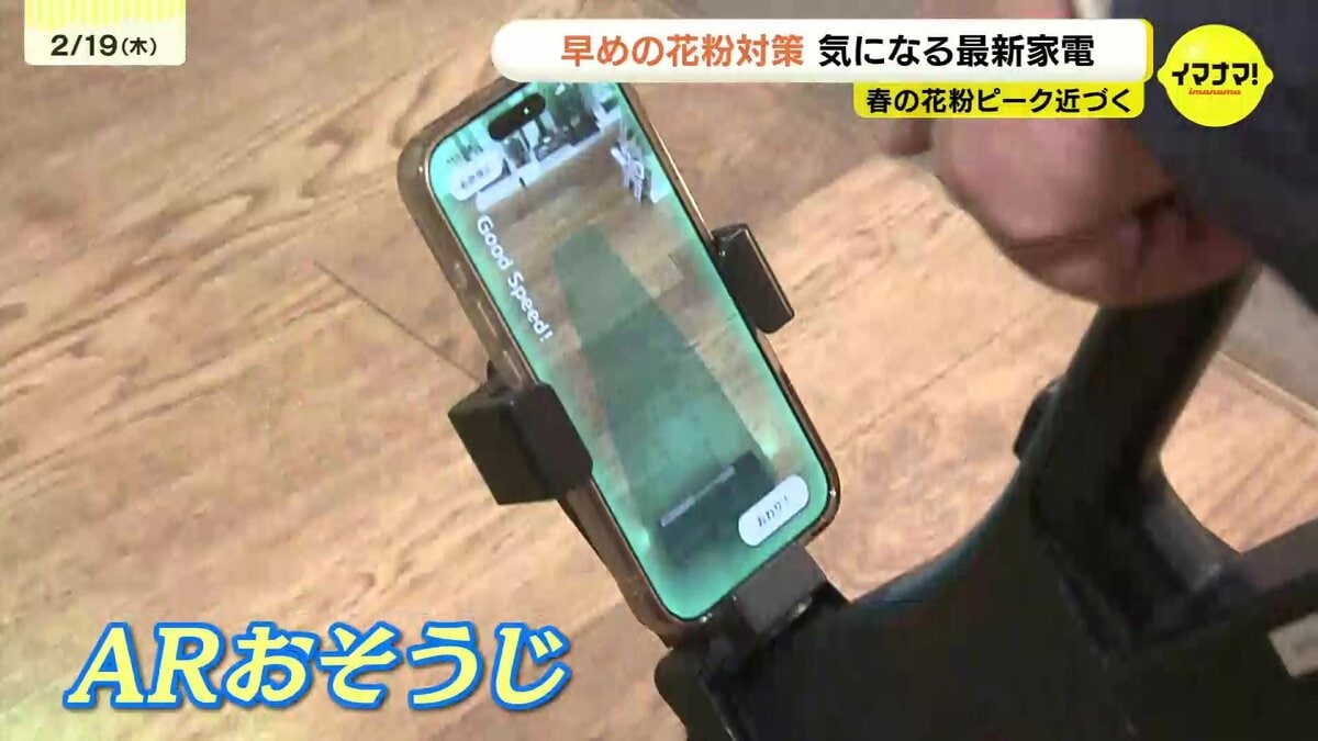 「スマートフォンのホルダーにつけてもらって、スタートすると…掃除機をかけたところが緑色に変わっていって、どこを掃除したか分かるようになっています」