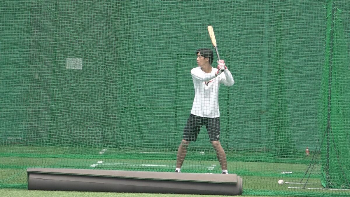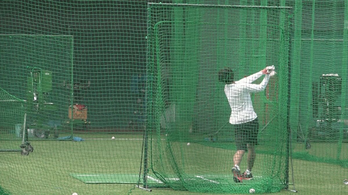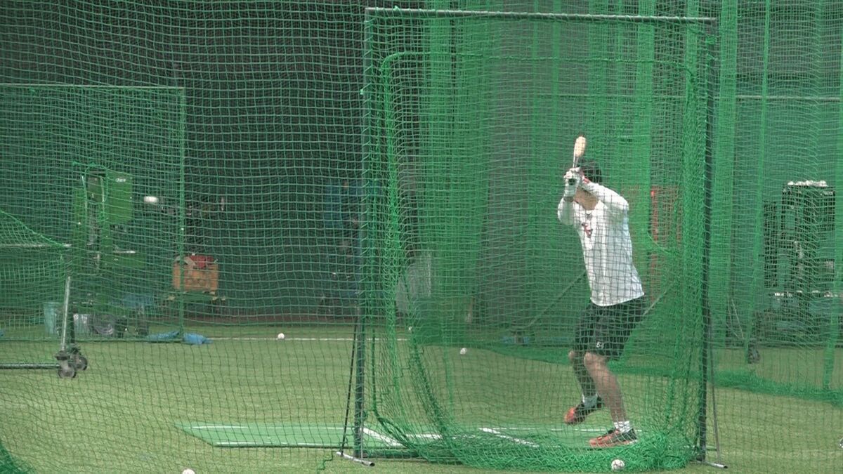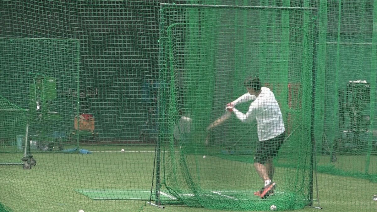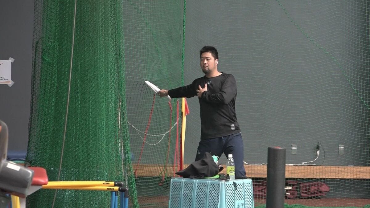 午前10時半、コザしんきんスタジアムに隣接する屋内練習場にバットを手にやってきた西川。マシンを相手におよそ30分間打撃練習に打ち込みました。