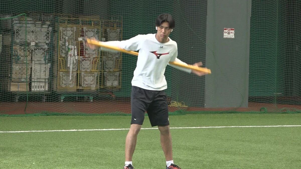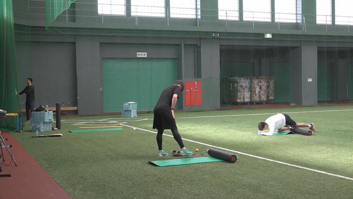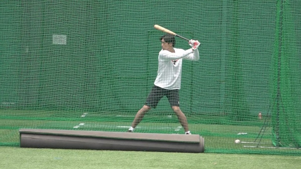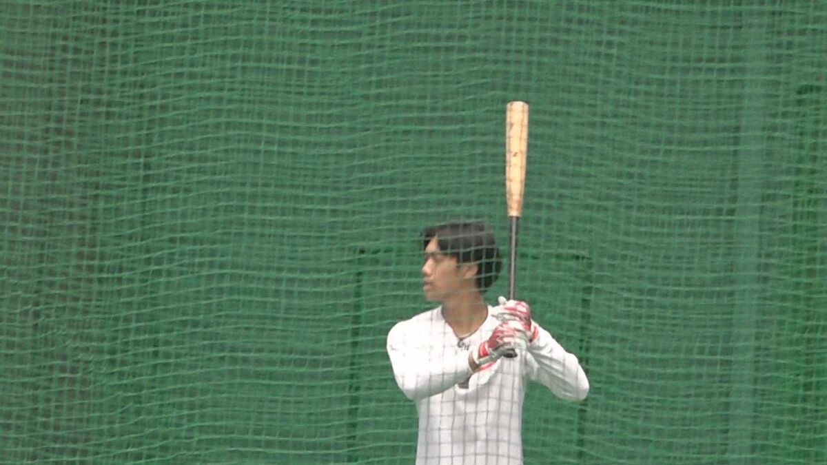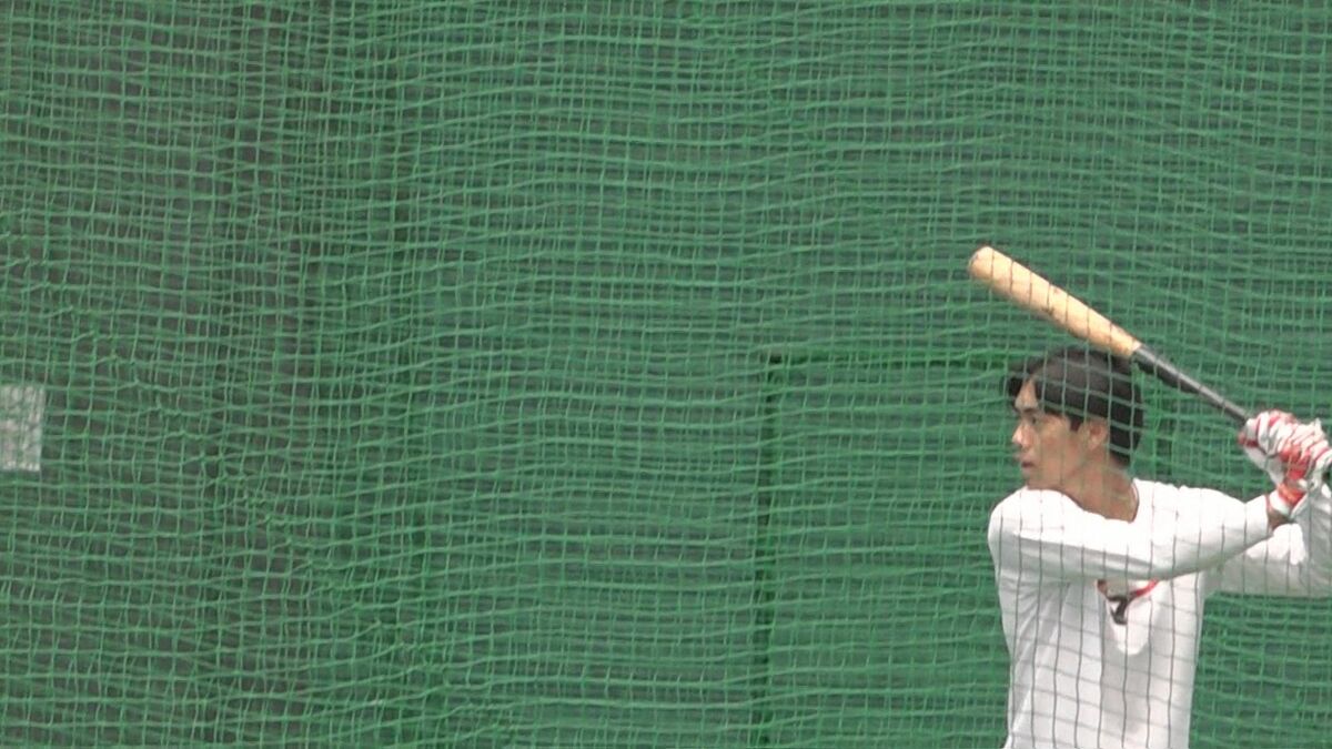 午前10時半、コザしんきんスタジアムに隣接する屋内練習場にバットを手にやってきた西川。マシンを相手におよそ30分間打撃練習に打ち込みました。