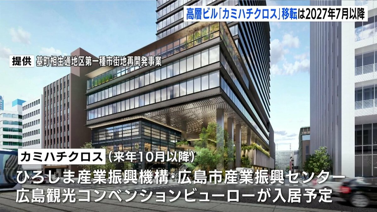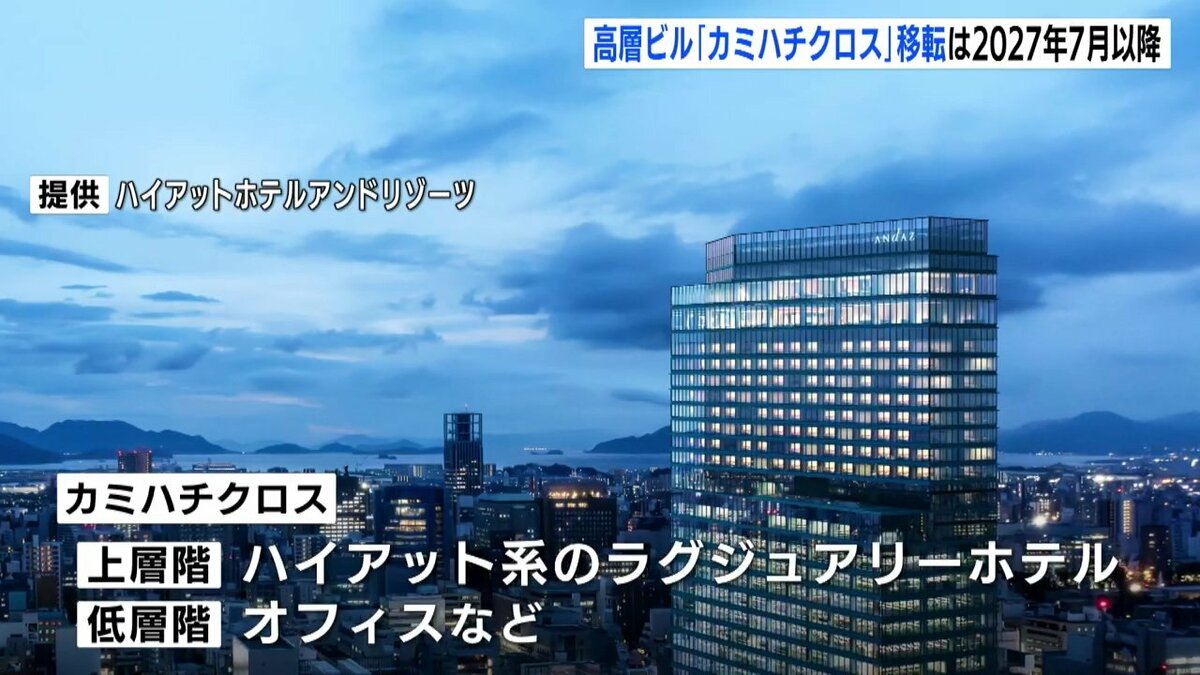 移転先は広島市中区基町に建設中の「カミハチクロス」で31階建てです。20階以上の上層階にはハイアット系のブランドホテル、低層階にはオフィスなどが入る計画です。広島商工会議所は、このビルの3階から6階を所有し、来年7月以降に移転するということです。