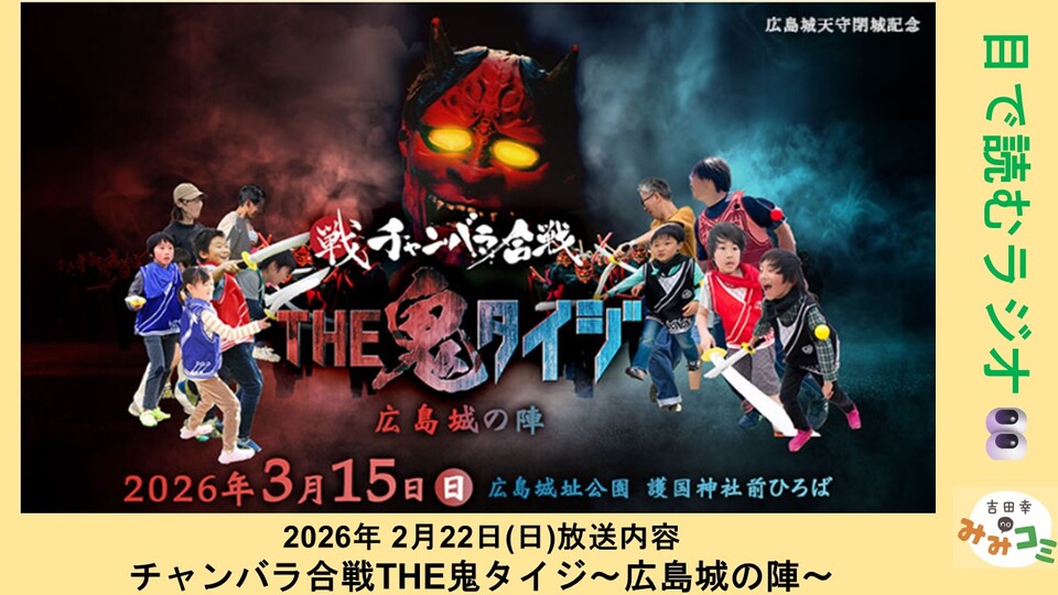 ãã®å€©å®ã®éåã«åããŠã3æã¯åºå³¶åã§ããããã®ã€ãã³ããäºå®ãããŠãããšããããšã§ã仿¥ã¯ãRCCãã¬ãThe鬌ã¿ã€ãžã«åºãŠããã鬌ãã¡ãšæŠããã£ã³ãã©åæŠThe鬌ã¿ã€ãžããããåºå³¶åã«ãã£ãŠãããã§ãã