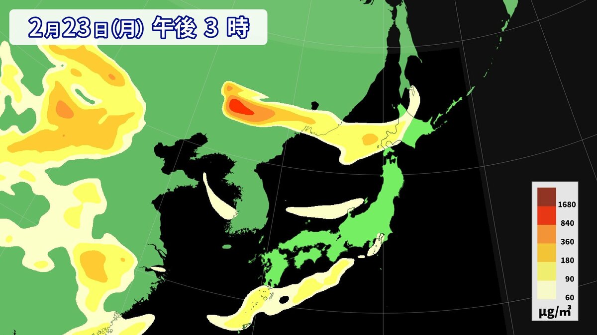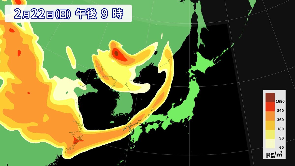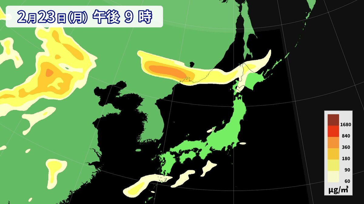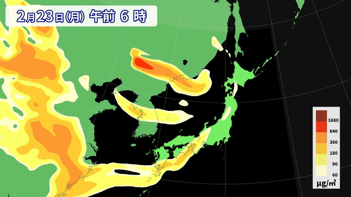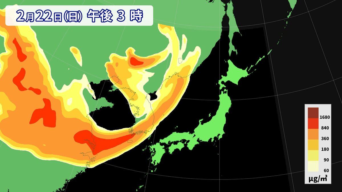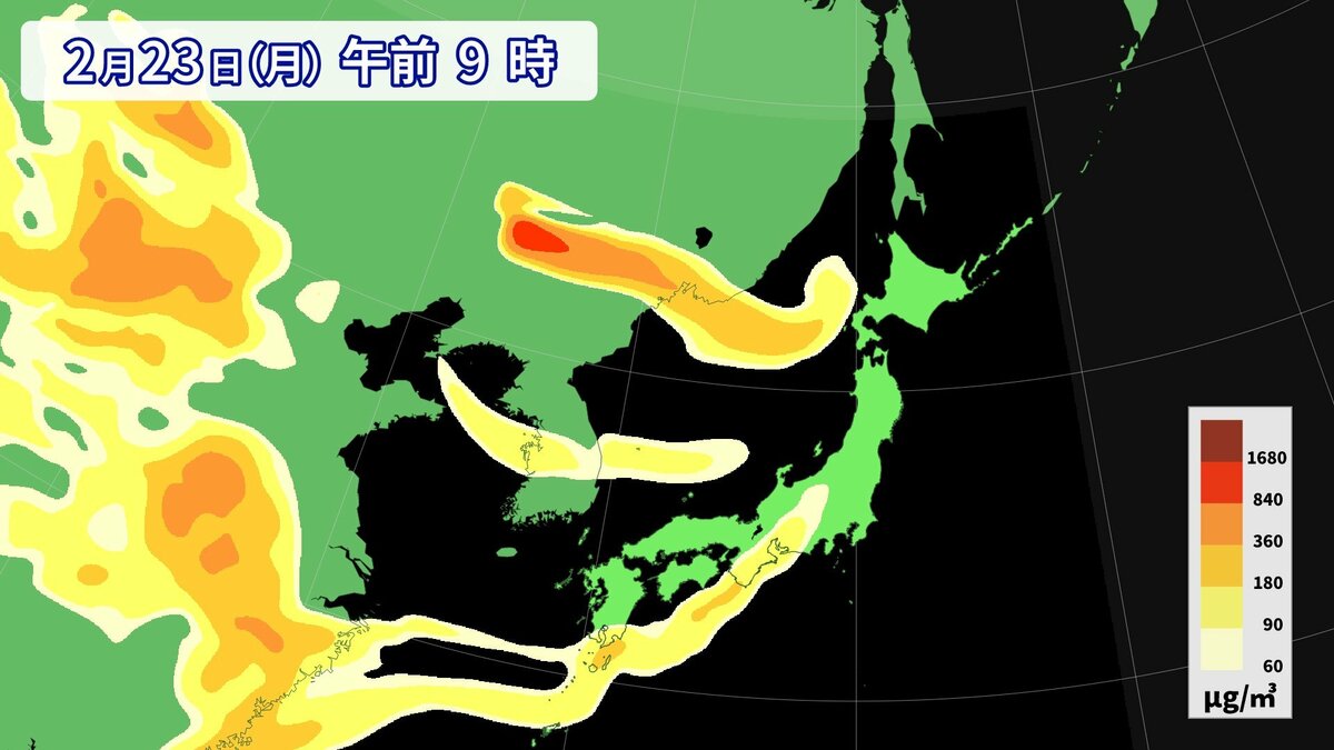 気象庁によりますと、22日夕方から23日にかけて、西日本の広い範囲で黄砂が予想されます。視程(水平方向の見通し)が10km未満となるでしょう。所によっては視程が5km未満となる見込みです。