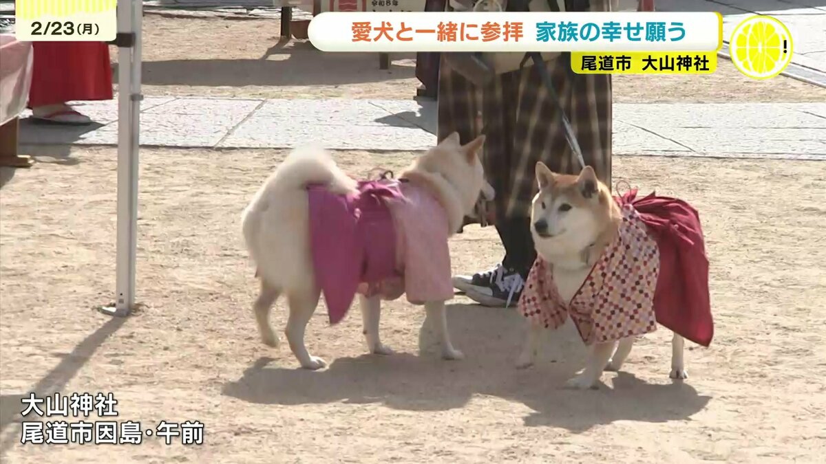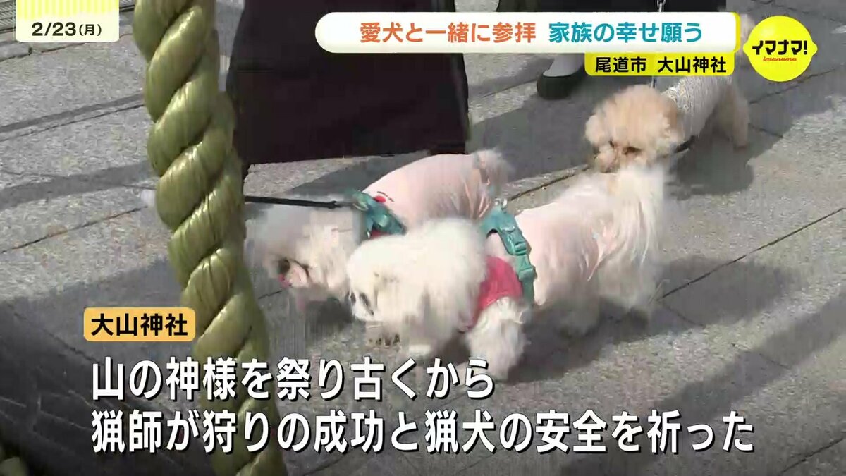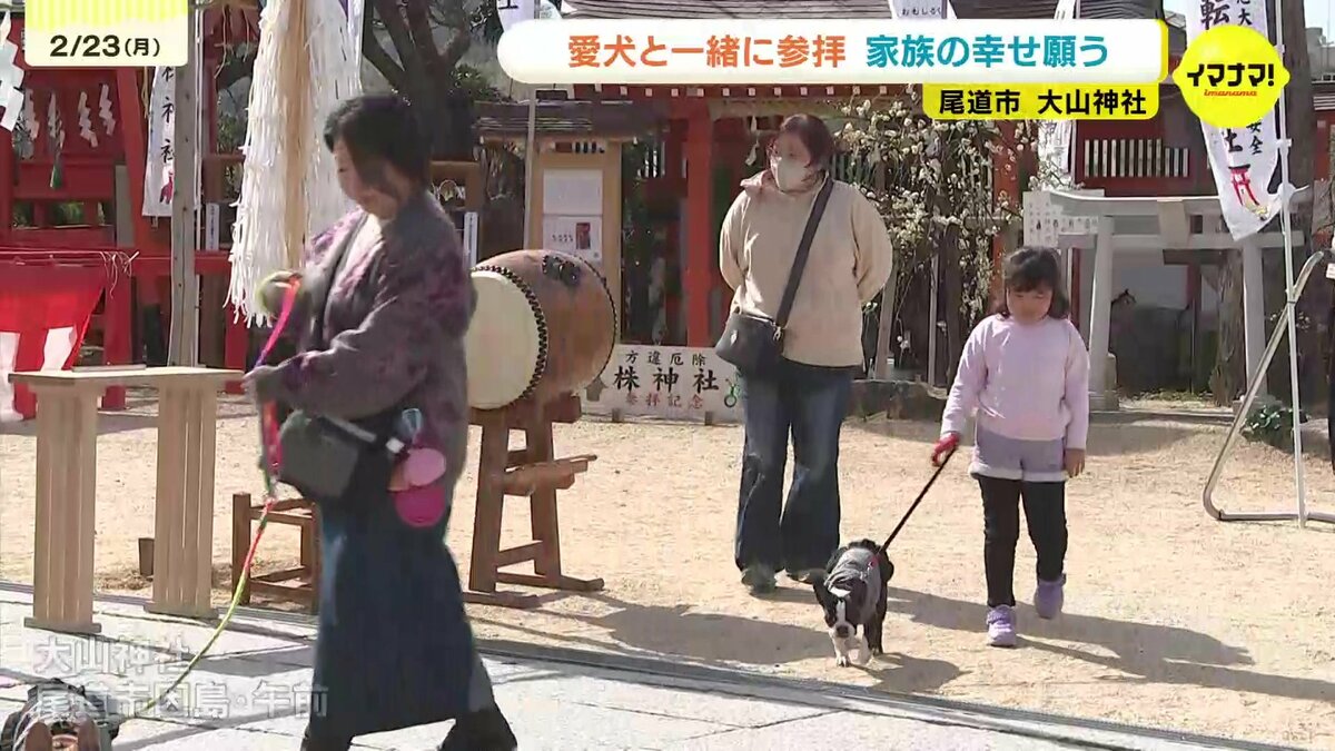 3連休最終日の23日、広島県尾道市の神社には、愛犬と一緒に初詣をするため、多くの家族連れが訪れました。