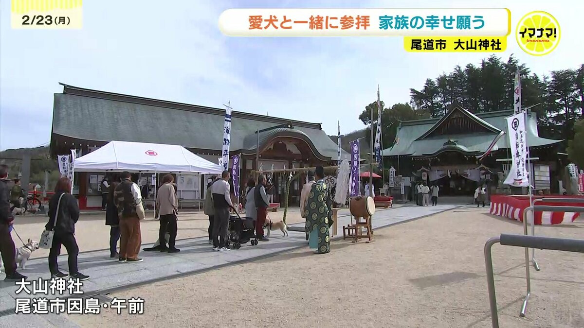 尾道市因島にある大山神社には、家族の一員である犬に元気で過ごしてもらいたいと県内外から多くの愛犬家が訪れました。