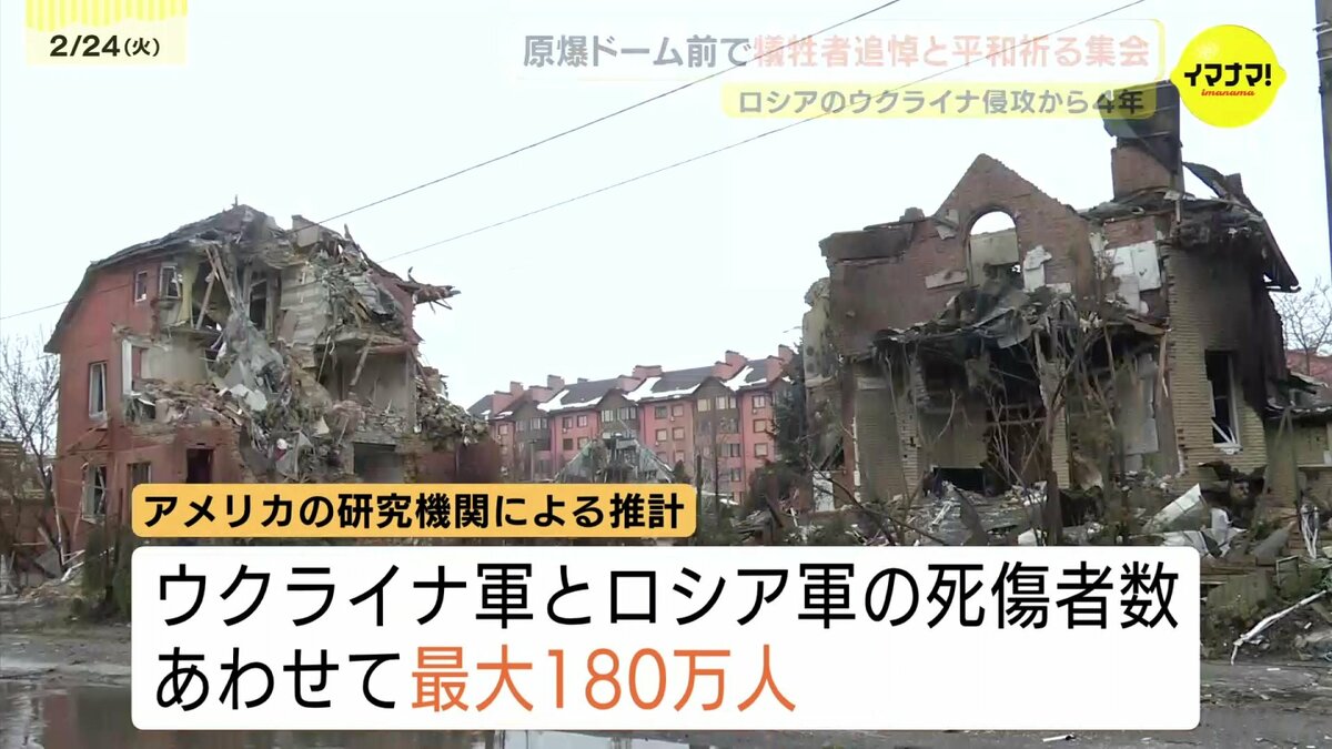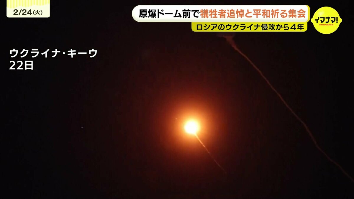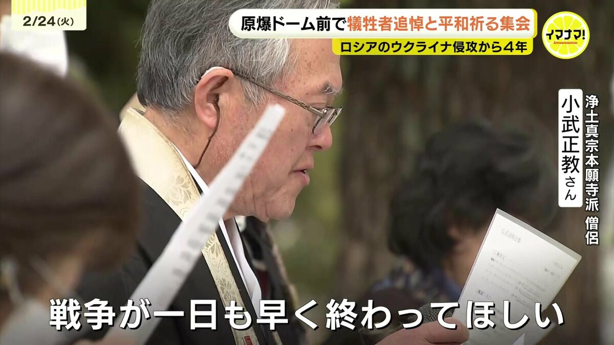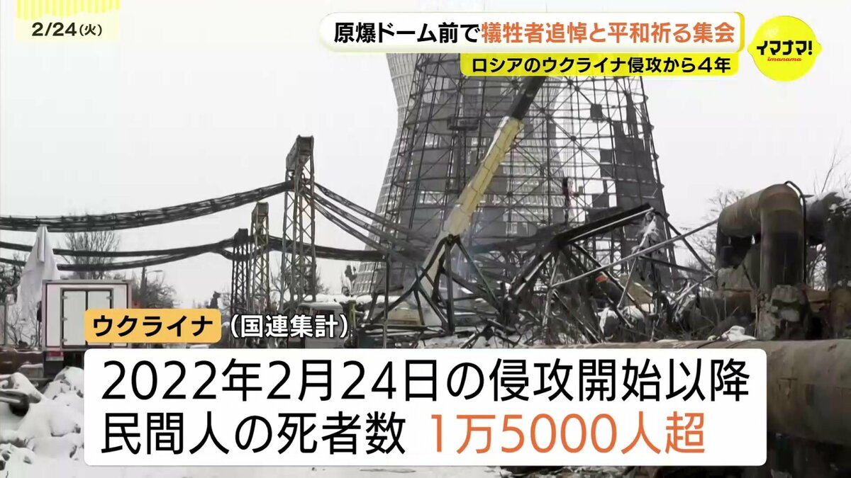 ロシアによるウクライナ侵攻からきょうで4年となりました。広島市の原爆ドーム前では、犠牲者を追悼し、平和を祈る集会が開かれました。