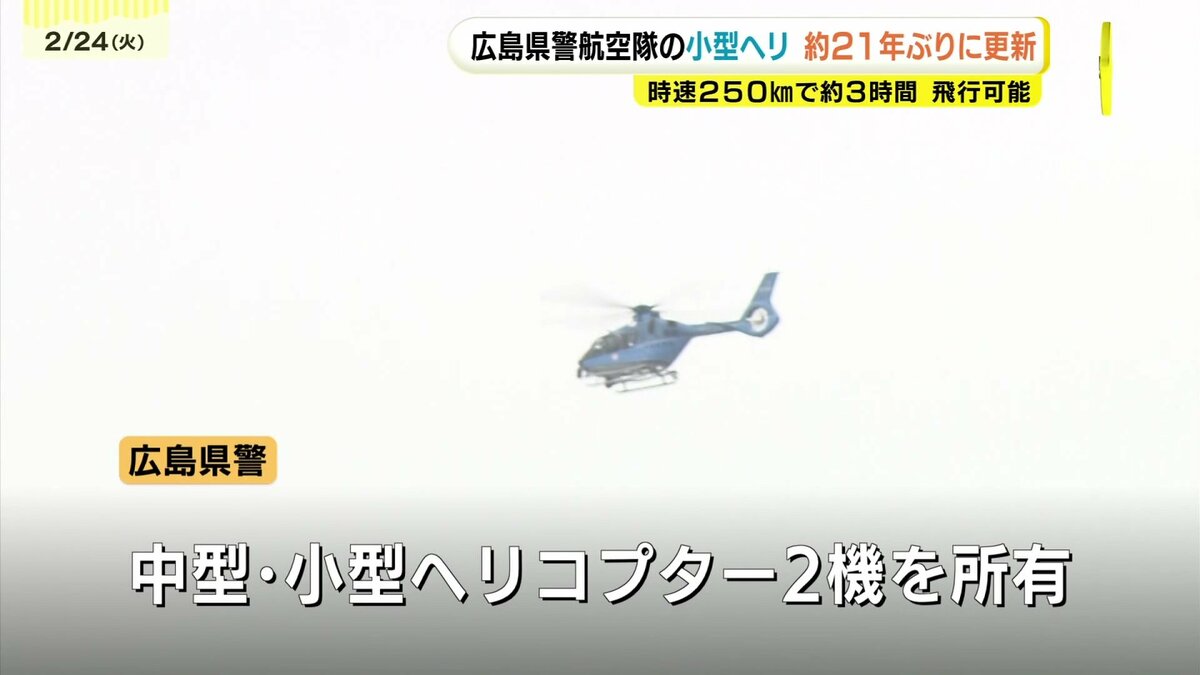 空からの目として活躍する広島県警航空隊。その小型ヘリコプターがおよそ2025年12月12日から21年ぶりに新しくなり、24日、メディアに公開されました。