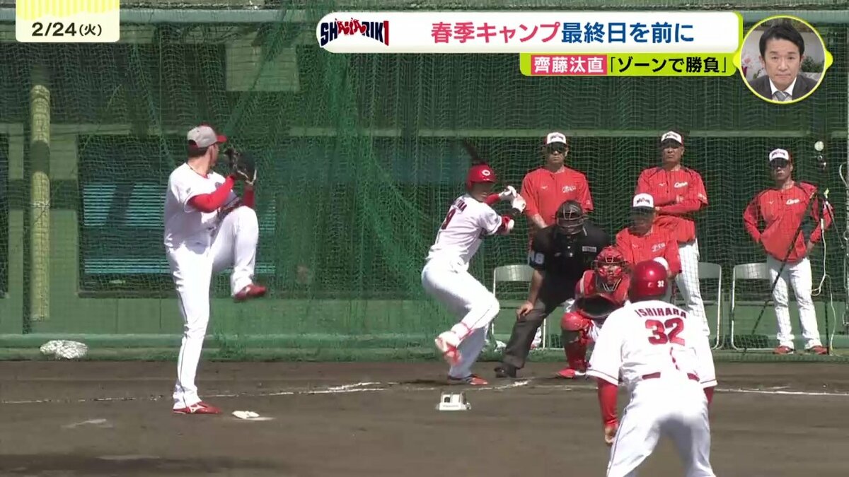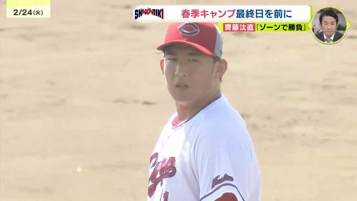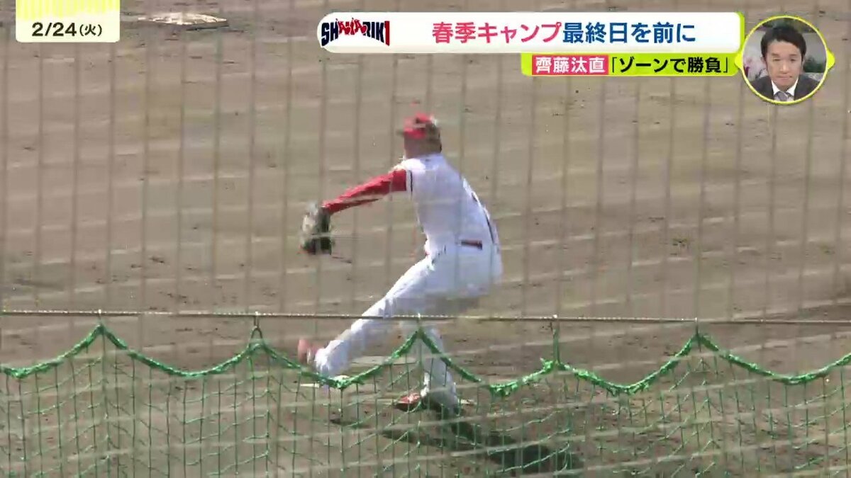 最終日を前に課題に向き合っていたのがドラフト2位の齊藤汰直。オープン戦初戦に先発しましたが2回3失点と悔しい結果でした。「きょうはゾーンで勝負することしか考えなかった」とストライク先行のピッチングでした。