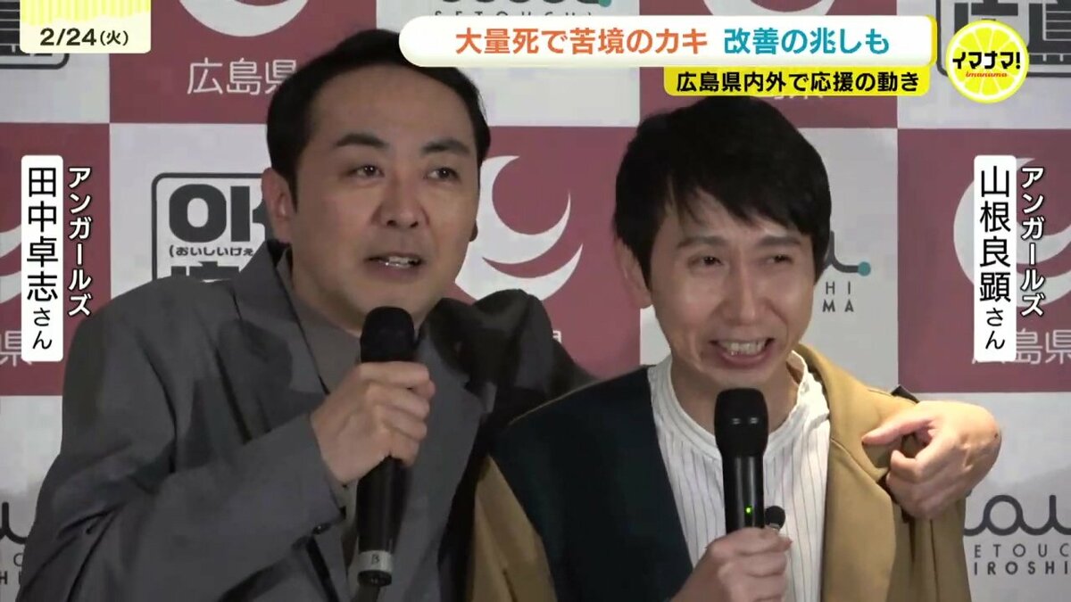 東京銀座にある広島県のアンテナショップ「TAU」には、24日、広島のカキ業界を応援しようと、お笑いコンビアンガールズが登場しました。