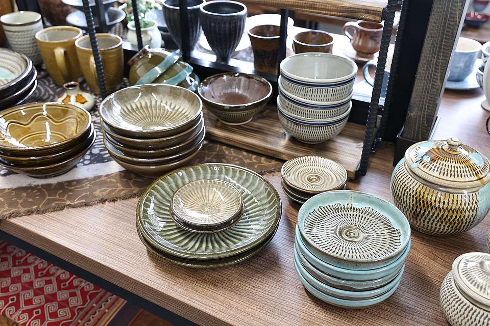 店主・吉野ゆりえさんが各地の窯元へ自ら足を運び、土地の土や木の匂い、作られた背景や文化、手しごとの跡が感じられる品々を一つひとつ選び抜いている。