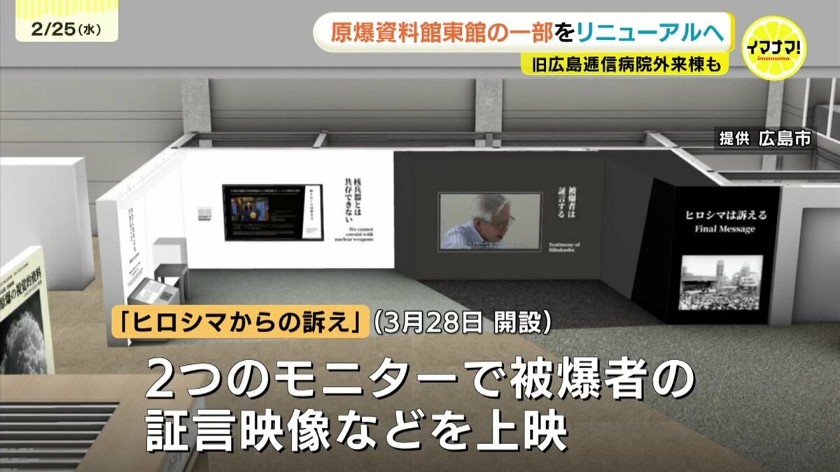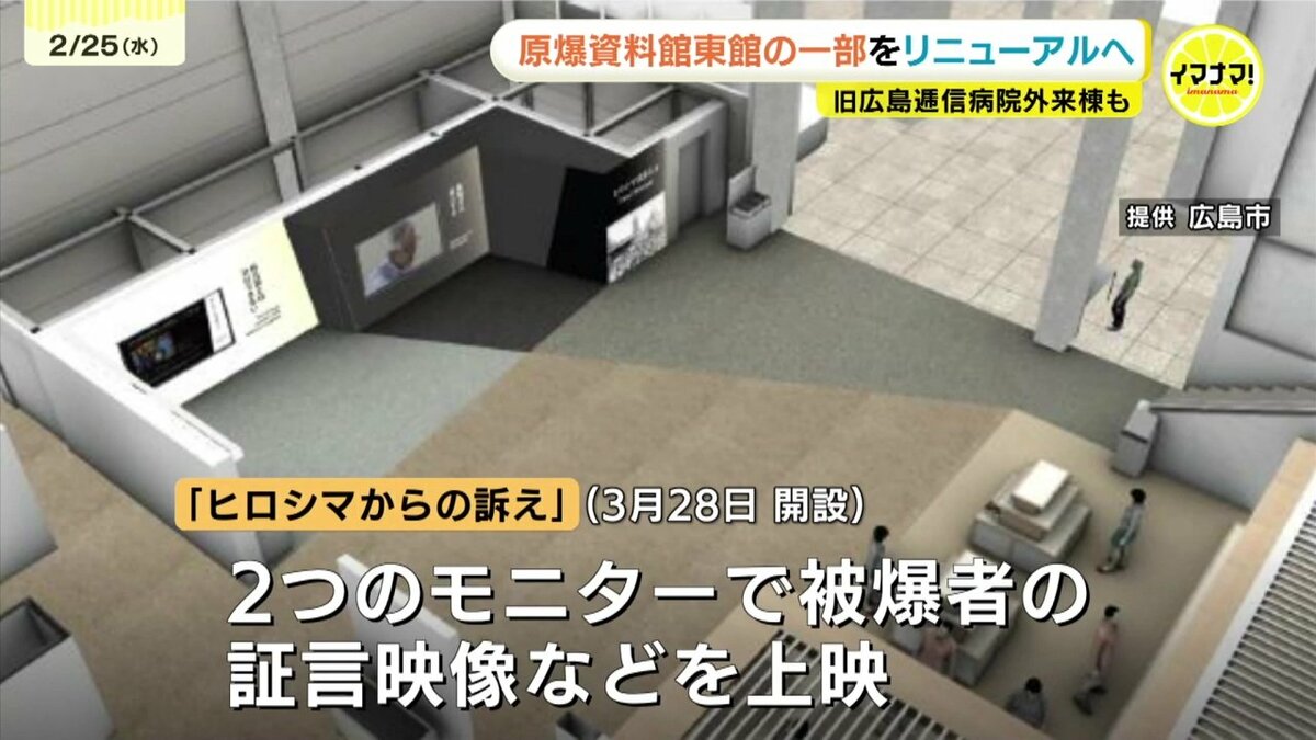 「ヒロシマからの訴え」というタイトルで、2つのモニターで被爆者の証言などが上映されます。オープンは、3月28日です。