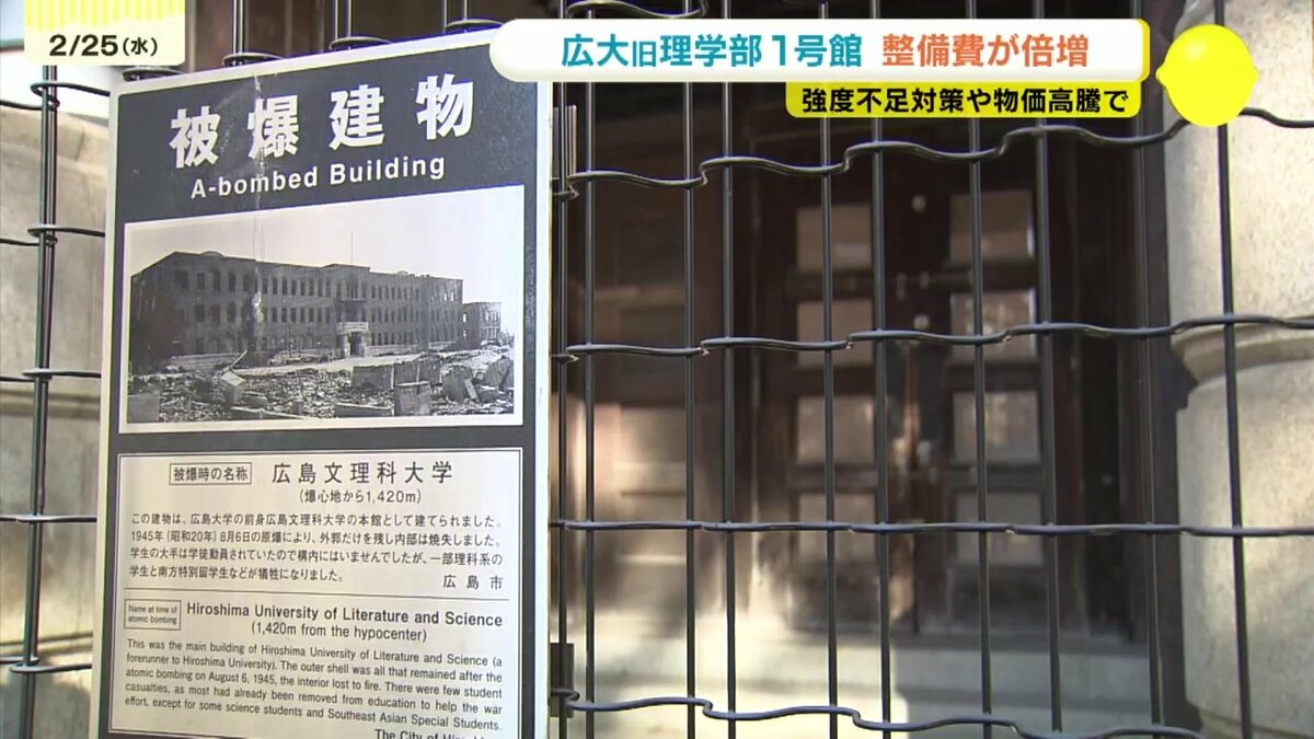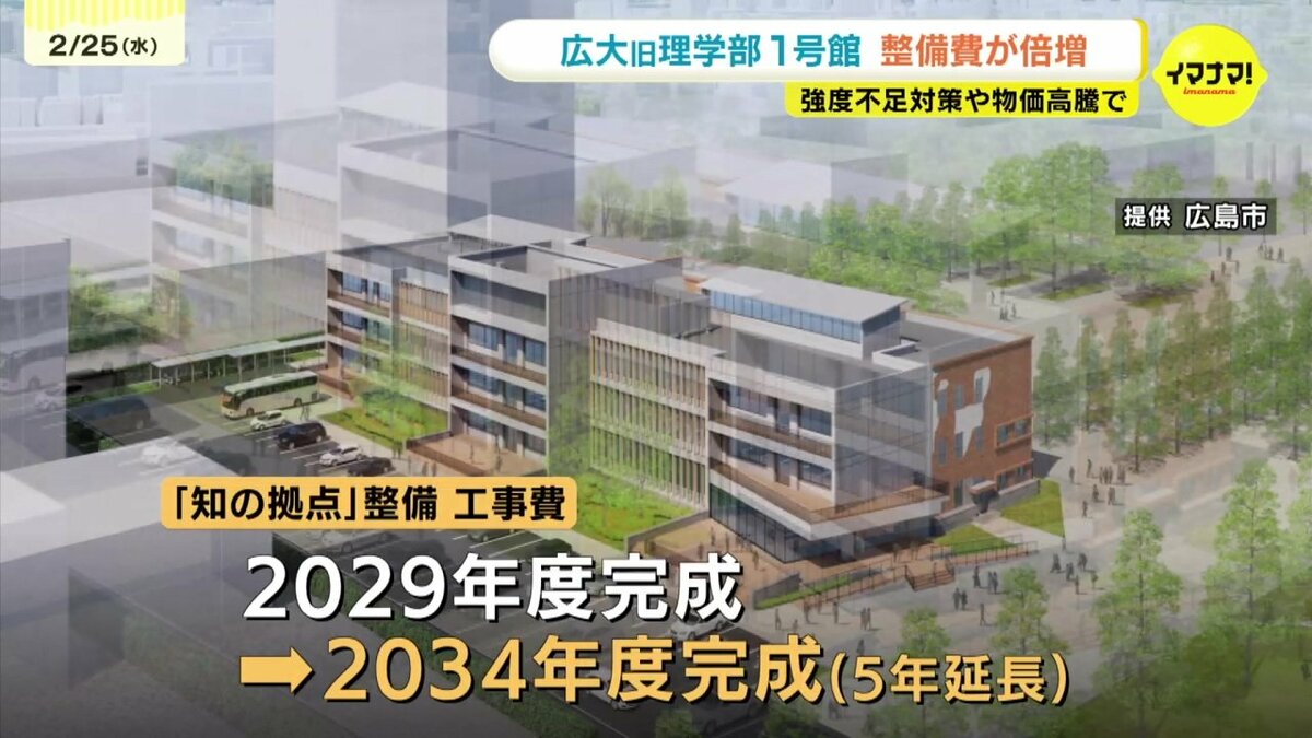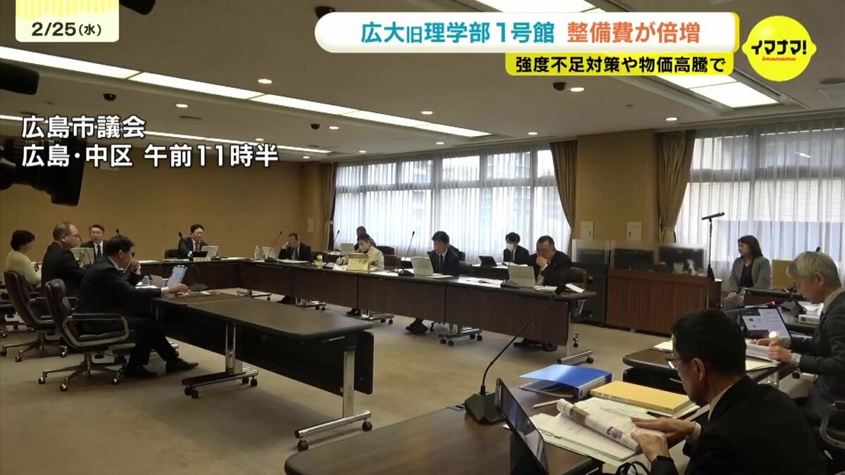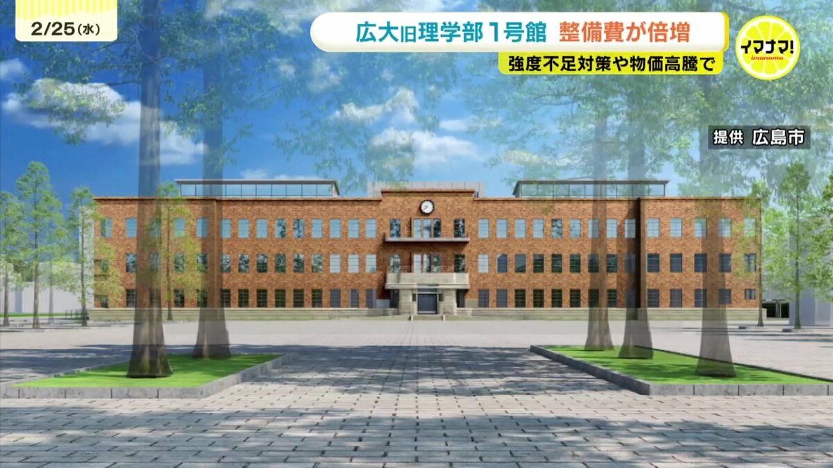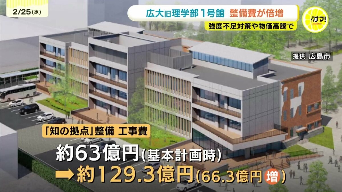 広島市は、3年前の基本計画では、63億円としていた広島大学旧理学部1号館を利用した「知の拠点」整備の工事費について、66億円以上増額することを明らかにしました。