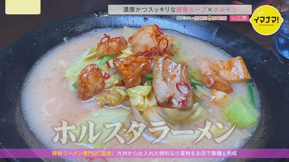 天谷さんは、濃厚かつスッキリな豚骨スープにたっぷりホルモンをトッピングした「ホルスタラーメン」を。