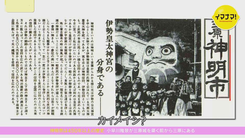 「伊勢の方から来られた神さまっていうところで、であの、そこからやっぱりこう…どんどん違う県に広がった。伊勢から三原に来られて、そこから全国に広がった…だるま…」