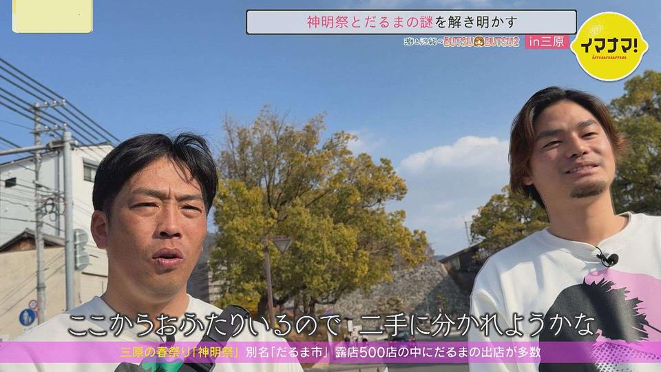 別名「だるま市」としても知られる 神明祭 で盛り上がる三原を巡っているのは、イマナマ!でもおなじみ✨RCC野球解説者の天谷宗一郎さん&引退後レモン農家🍋に転身したトッティこと戸田隆矢さん のカープOBコンビ😍
