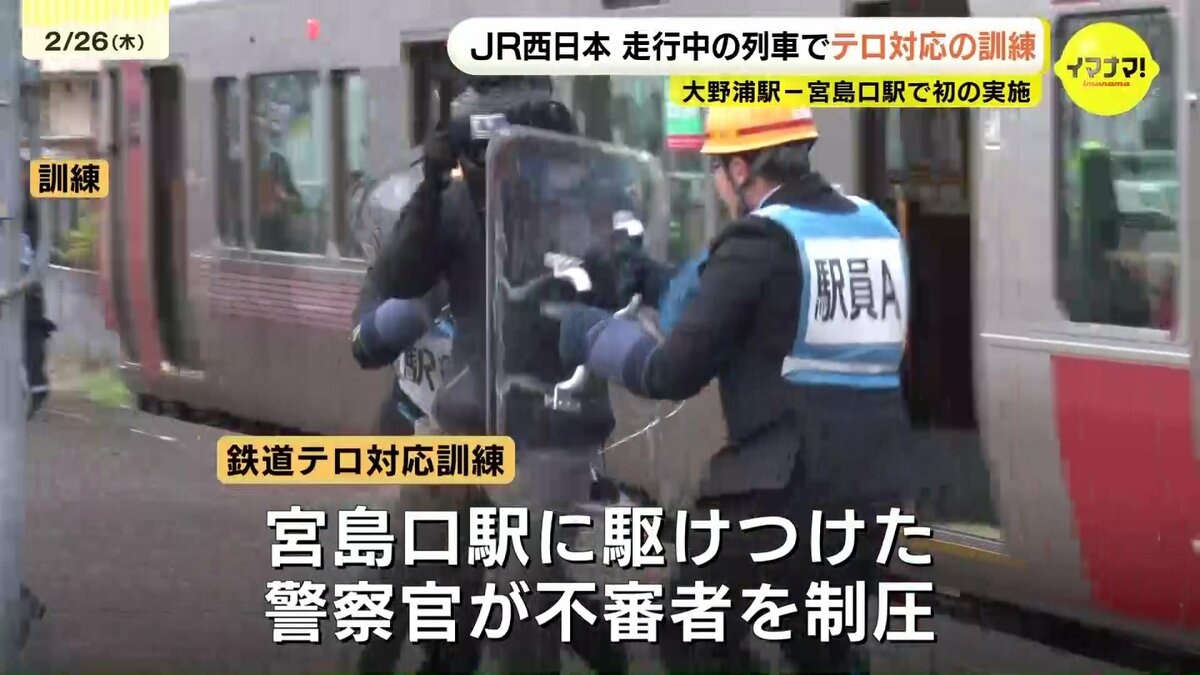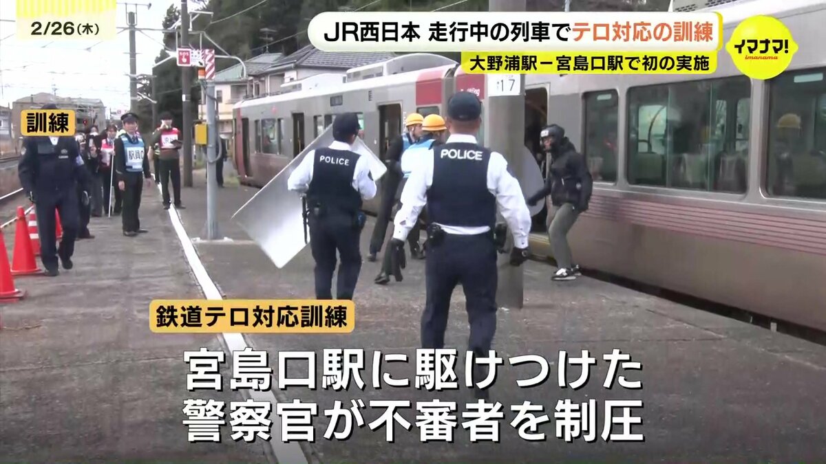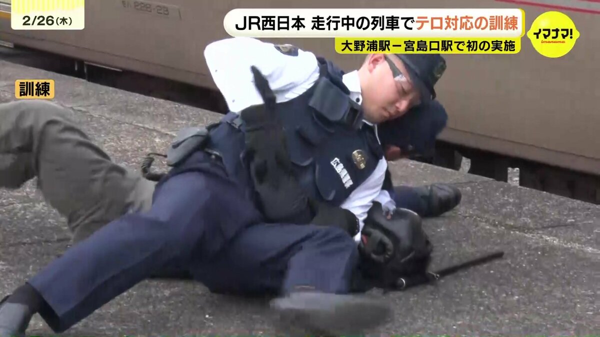 不審者が人質をとった場面では、警察官は冷静な対応を続けつつ、逃走経路を遮断。列車が宮島口駅に到着したところで、駆けつけた警察官によって、不審者は制圧されました。