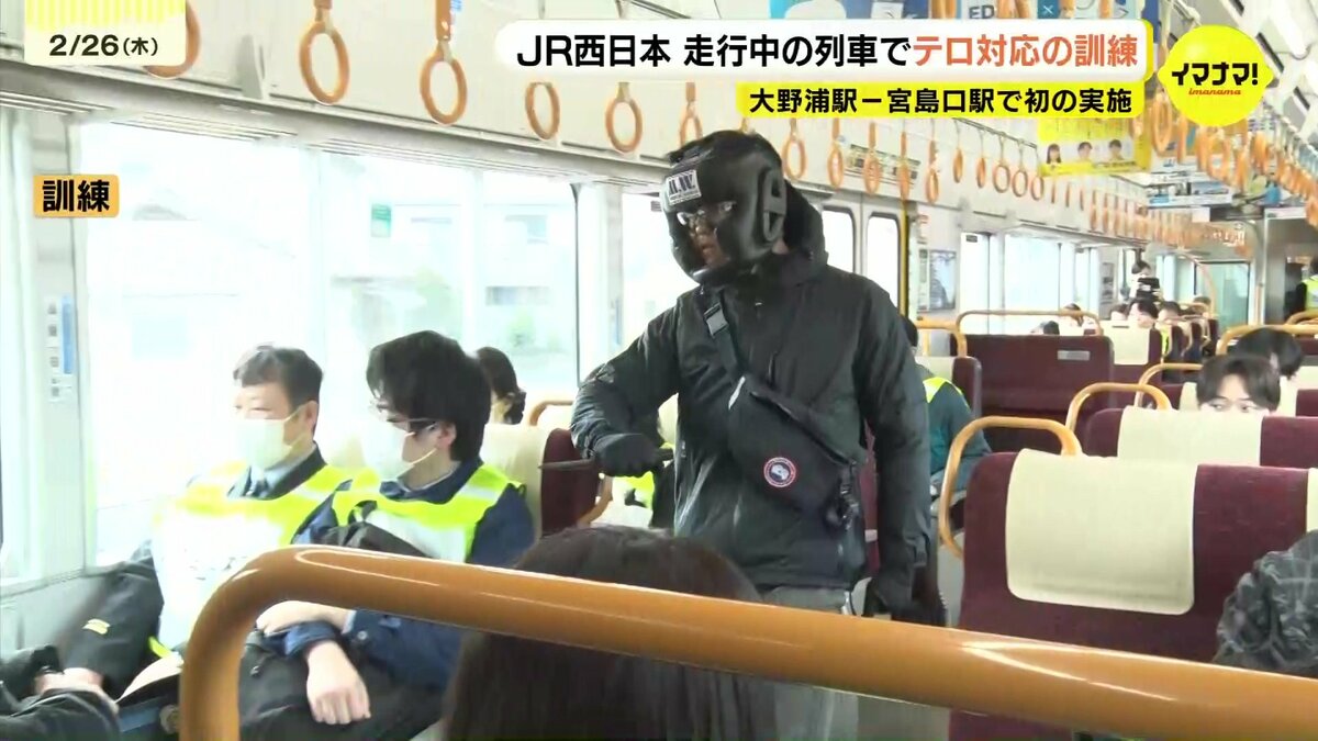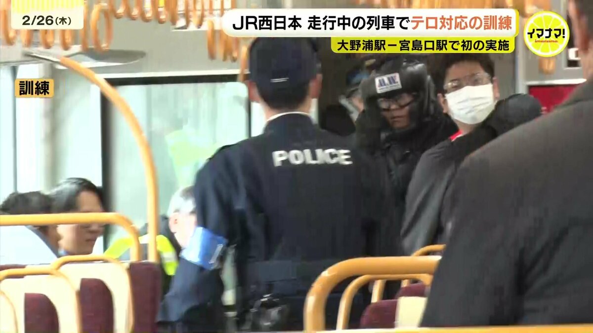 列車内でのテロ行為に対応するため、JR西日本は走行中の列車を使った訓練を行いました。