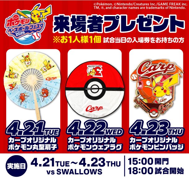 ◆4月23日(木)「カープオリジナル ポケモンピンバッジ」