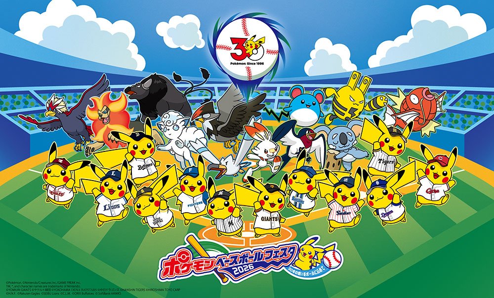 ポケモンの30周年記念事業として、プロ野球12球団それぞれとのポケモン演出試合が、2026年シーズンを通じて各ホームゲームにて開催されることが発表されました。