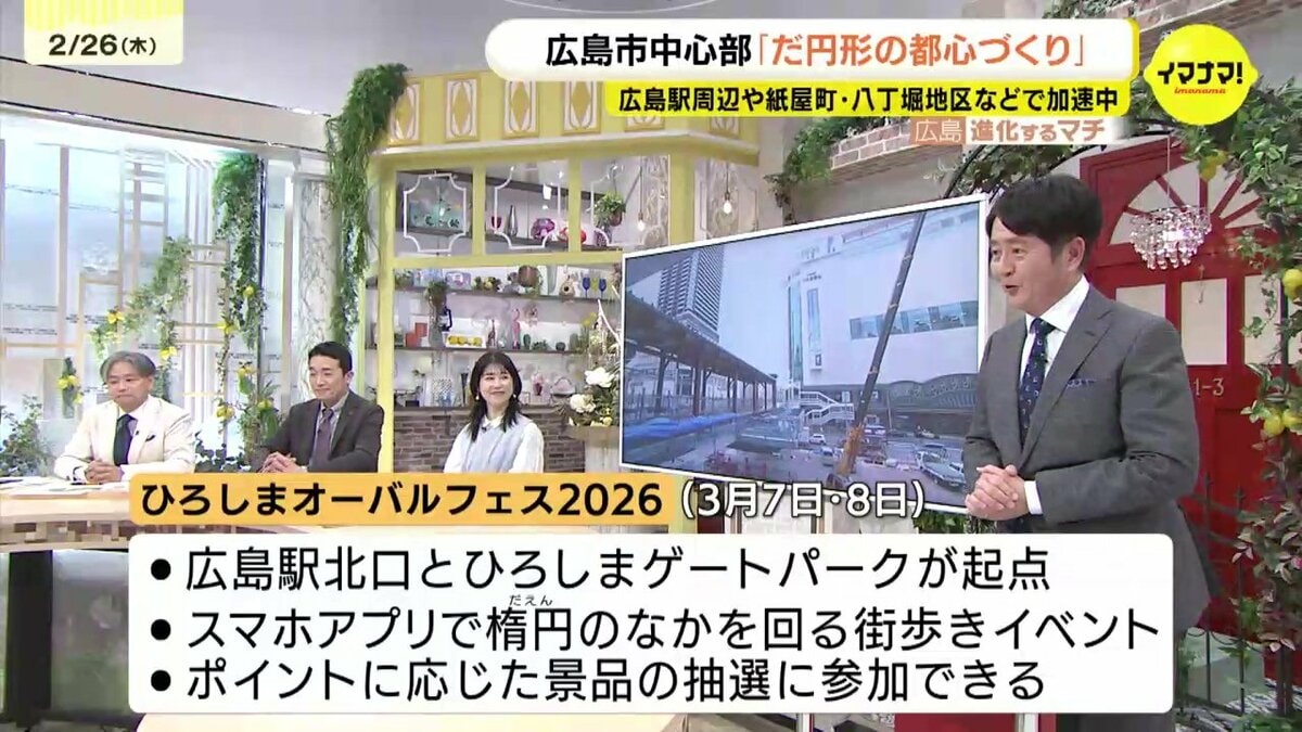 この「楕円形」に絡んで、3月にはイベントも開催されます。「楕円形」は英語で「オーバル」と言いますが、3月7日と8日に、「ひろしまオーバルフェス2026」が開催されます。広島駅北口とひろしまゲートパークの2箇所を起点に、スマホのアプリを使って楕円のなかにある70箇所以上のチェックポイントを回り、ポイントを獲得。ゴール後は、ポイントに応じた景品の抽選に参加できるということです。