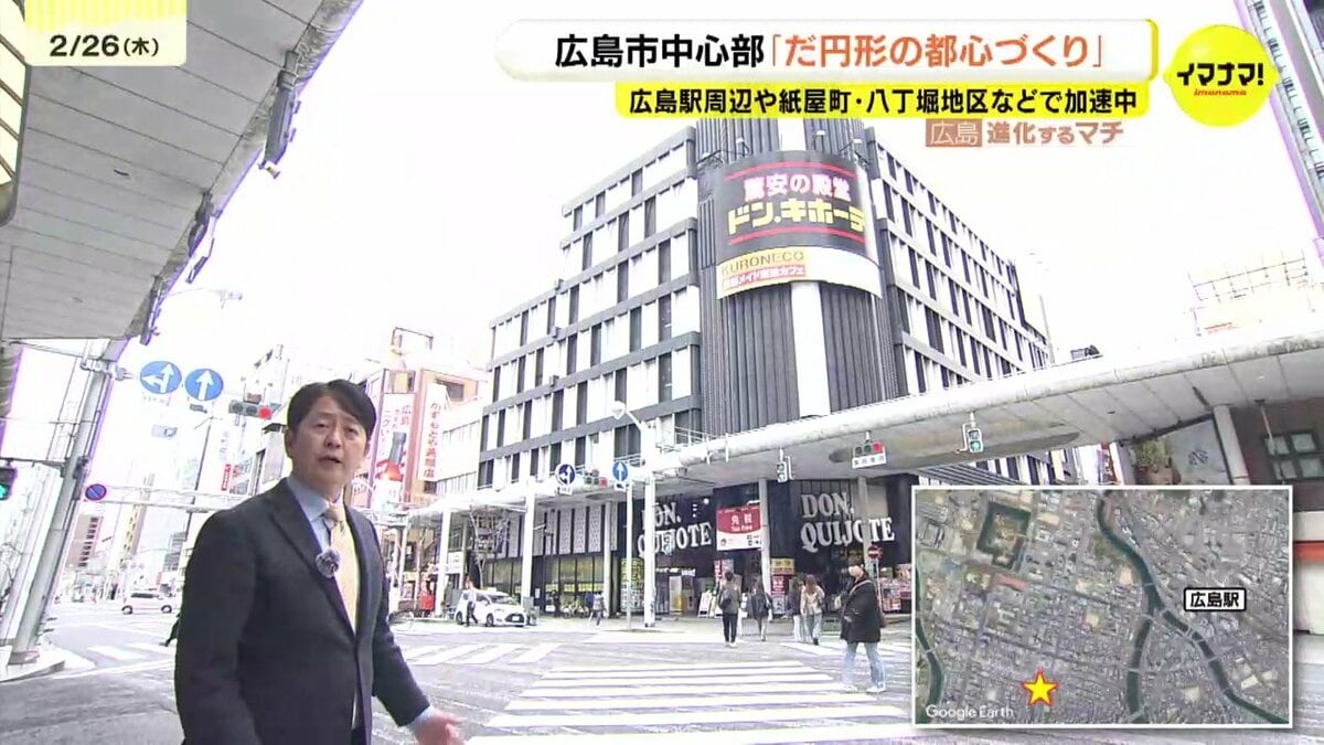 広島駅周辺と紙屋町・八丁堀地区を核としたエリアで構成される「楕円形の都心」。この楕円のなかで都心機能を高めようと、広島市などは「楕円形の都心づくり」を推進しています。2026年、このなかで動きが加速しそうなエリアをRCCの小林康秀キャスターが歩きました。