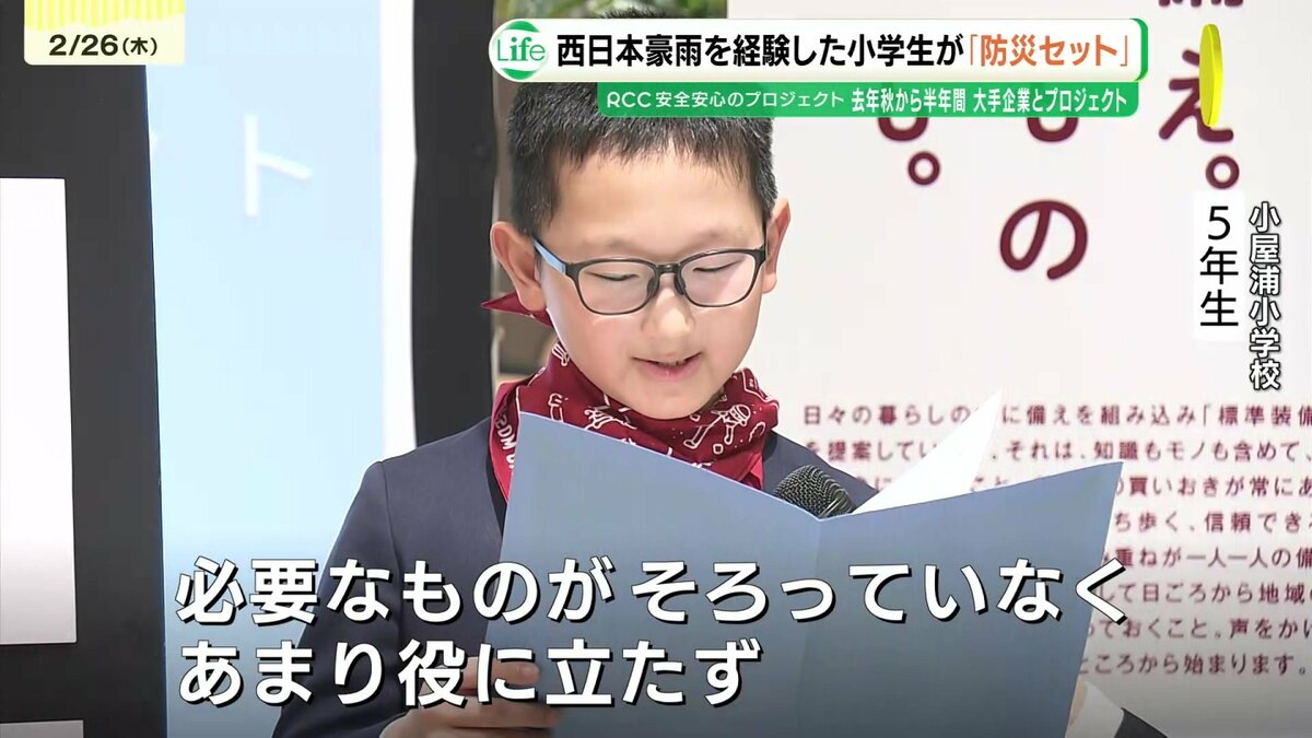 西日本豪雨を経験した広島県坂町の小学生が、大手企業と防災セットを手がけました。半年かけて考えたアイデアが、店舗でお披露目されました。
